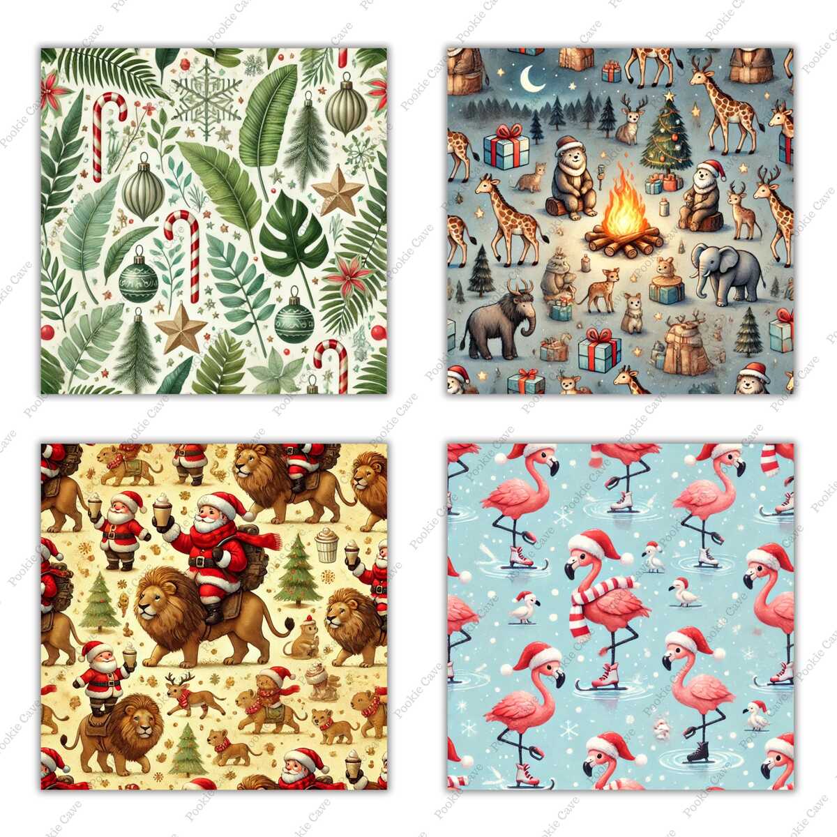 Animal Safari Christmas Digital Paper – Holiday Jungle Patterns (Digital Downloa