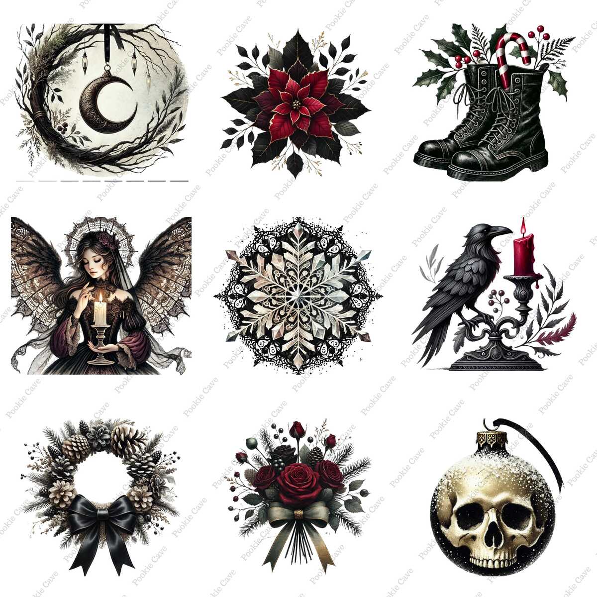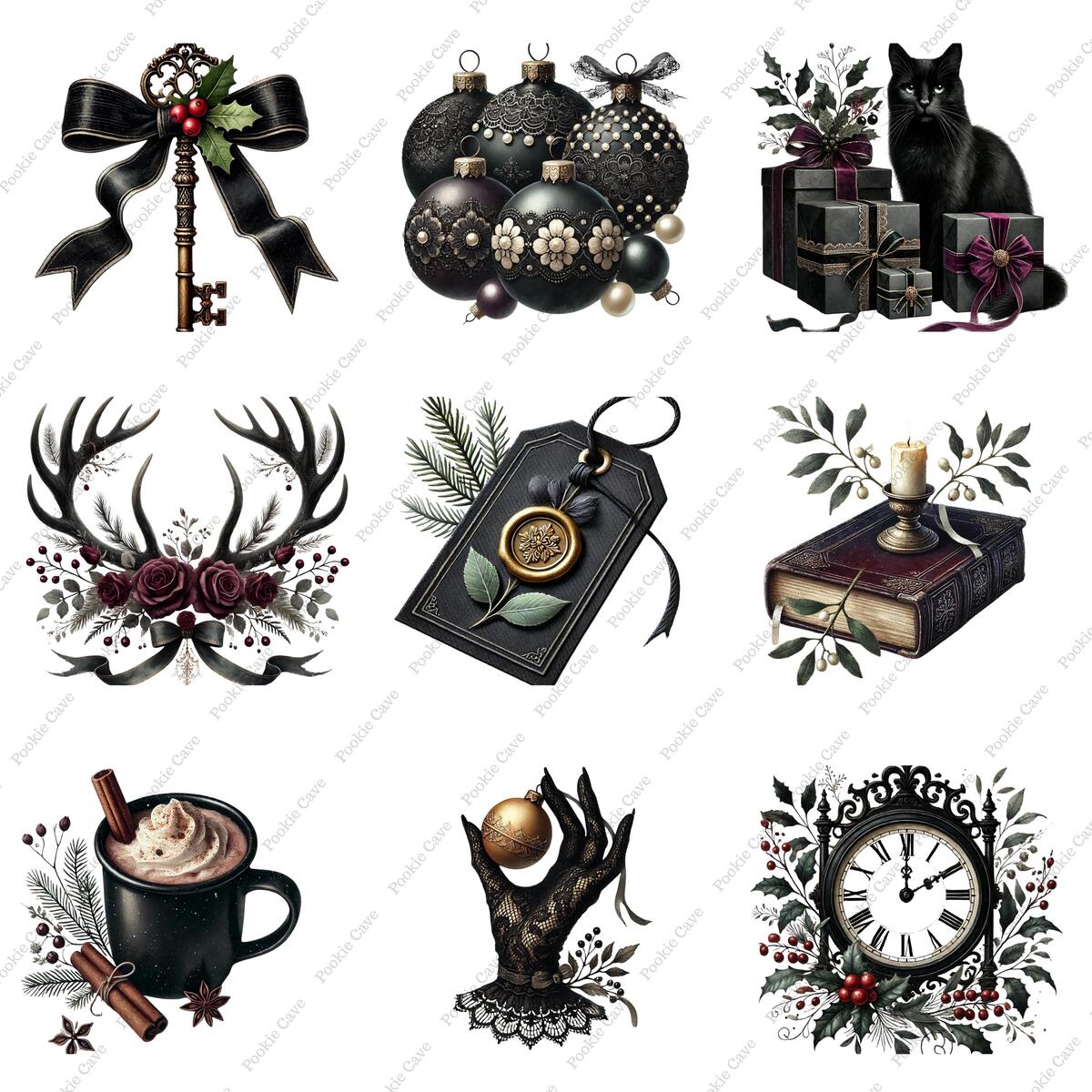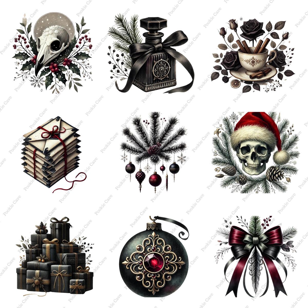 46 Gothic Christmas Clipart | Gothmas Dark Holiday PNGs | Vintage Watercolor Got