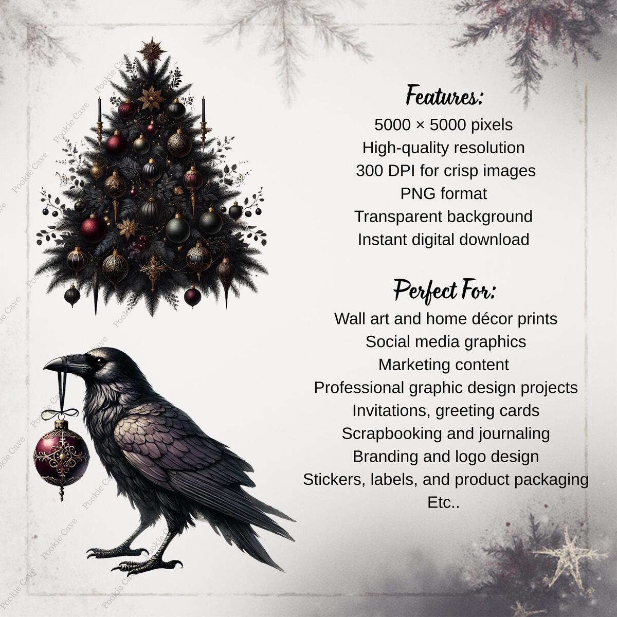 Bring a hauntingly elegant twist to the holidays with this 46-piece Gothic Christmas Clipart Bundle.