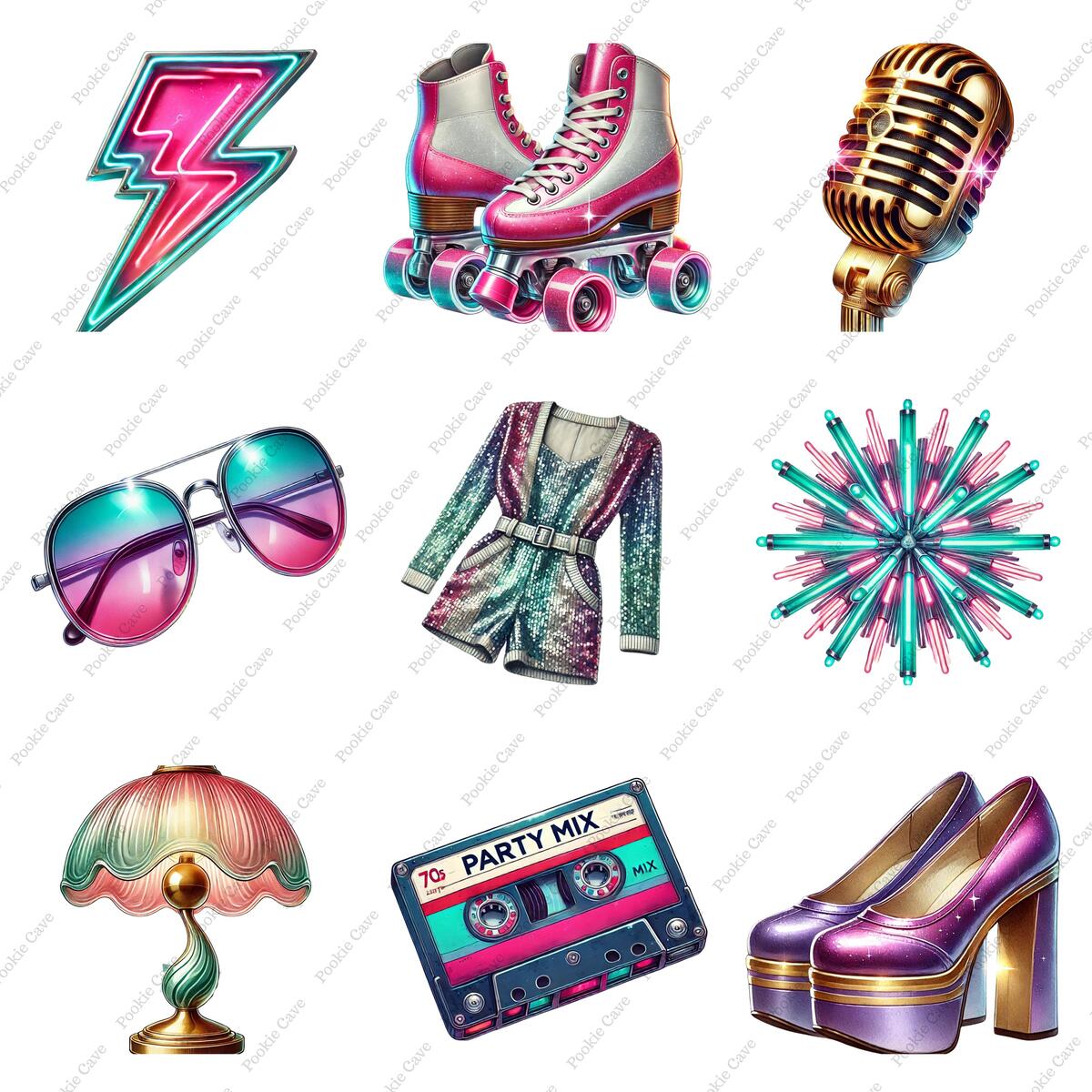 Retro 70s New Year Clipart – Disco PNG Graphics (Digital Download)