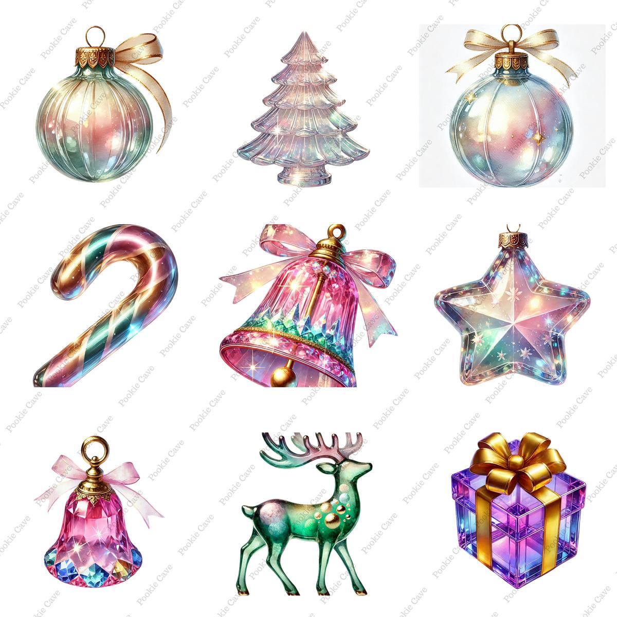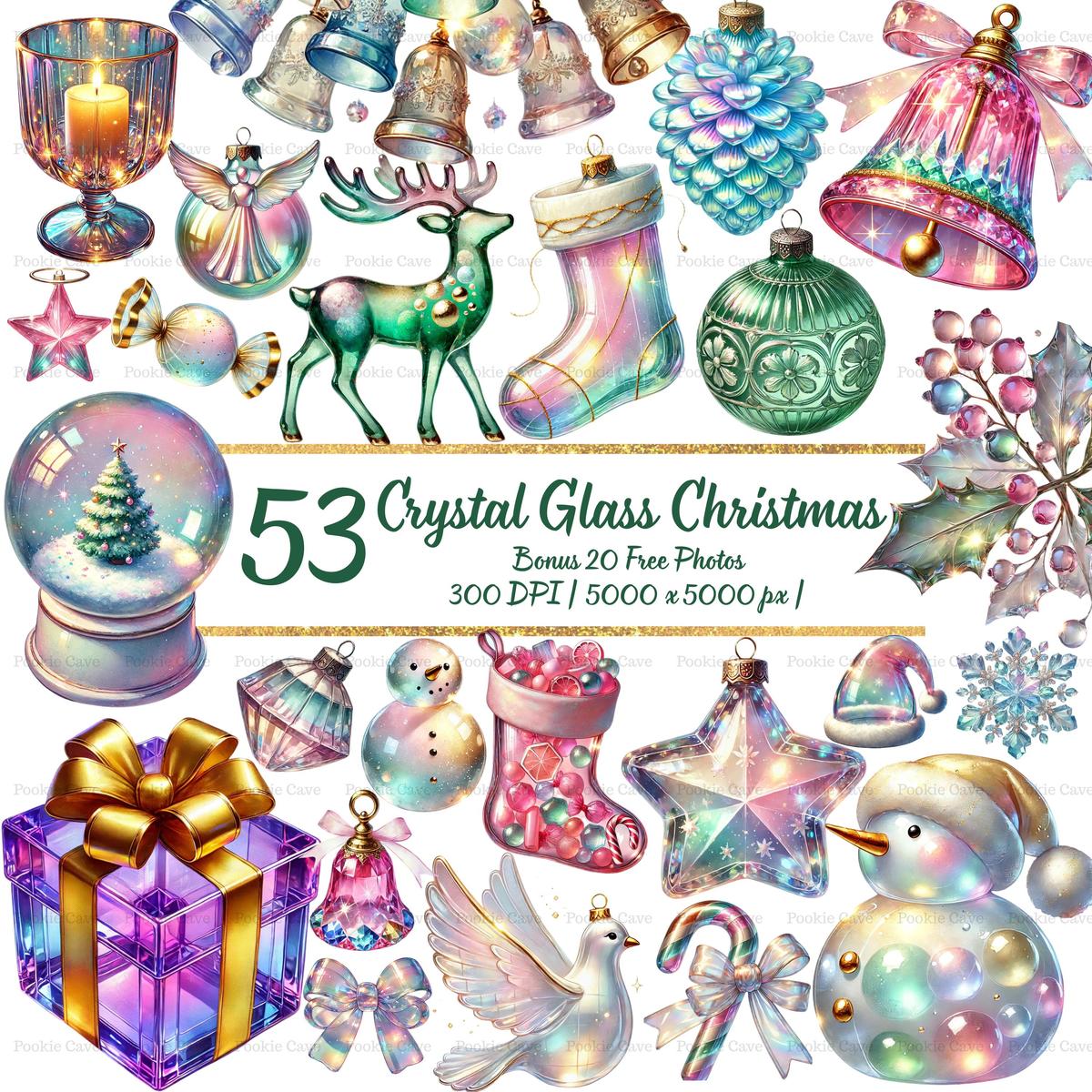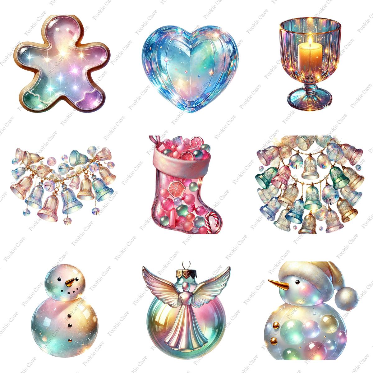 Bring enchantment to your holiday designs with this Crystal Glass Christmas Clipart Bundle – a collection of 53 digital watercolor elements.