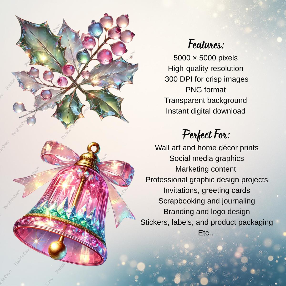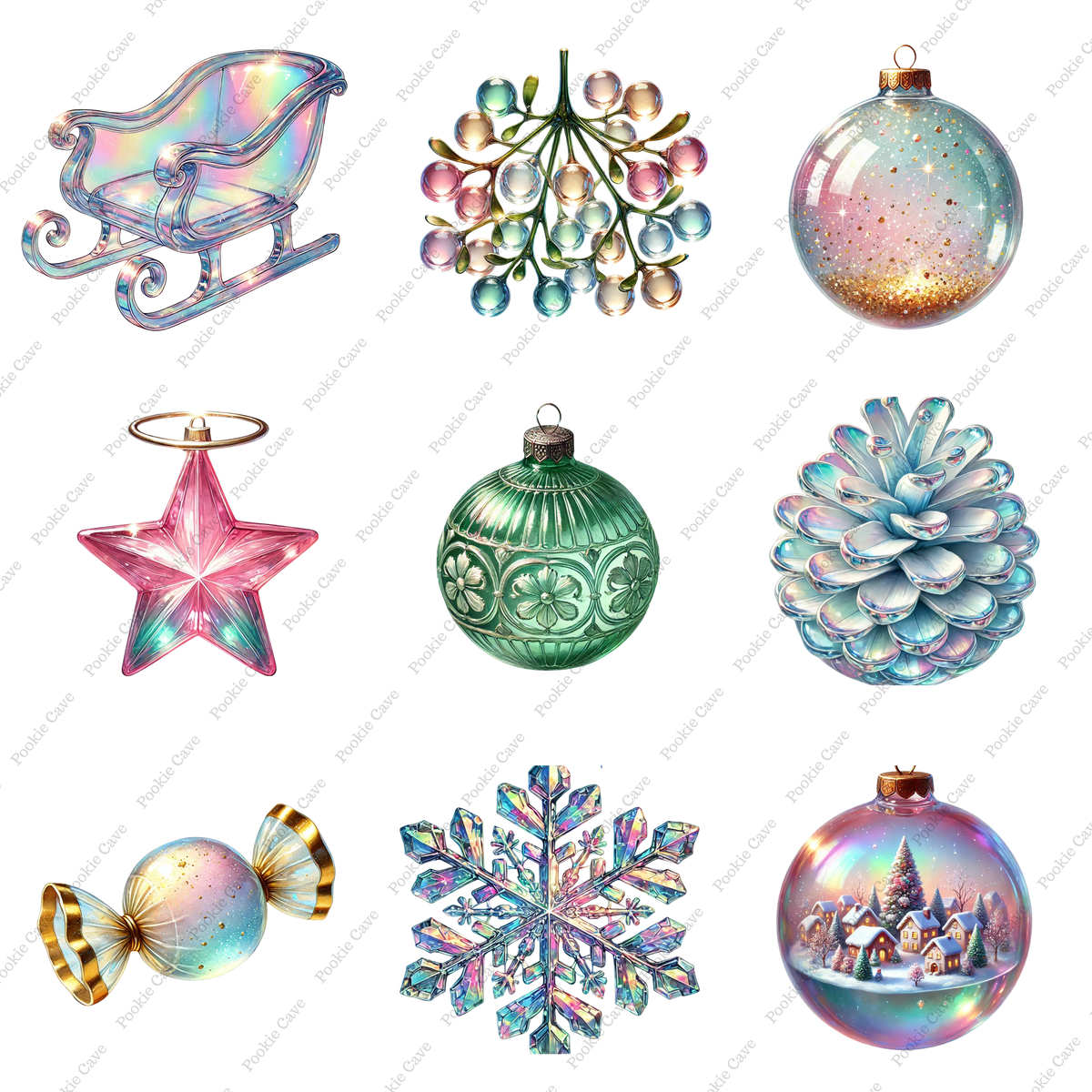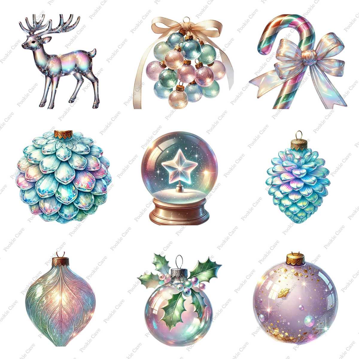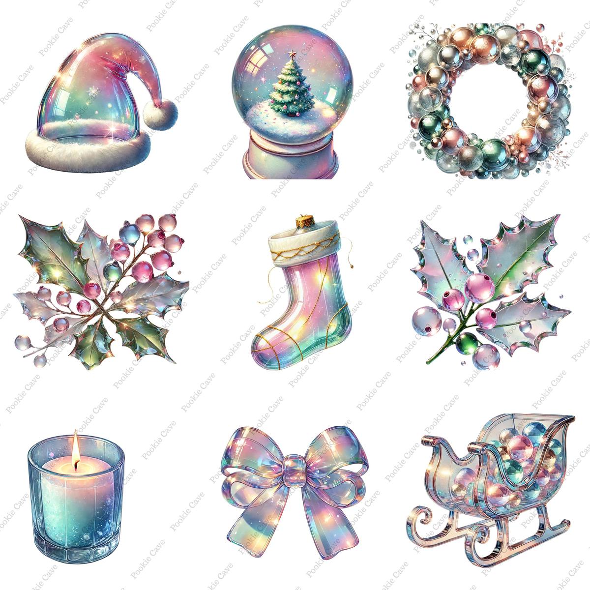 Bring enchantment to your holiday designs with this Crystal Glass Christmas Clipart Bundle – a collection of 53 digital watercolor elements.