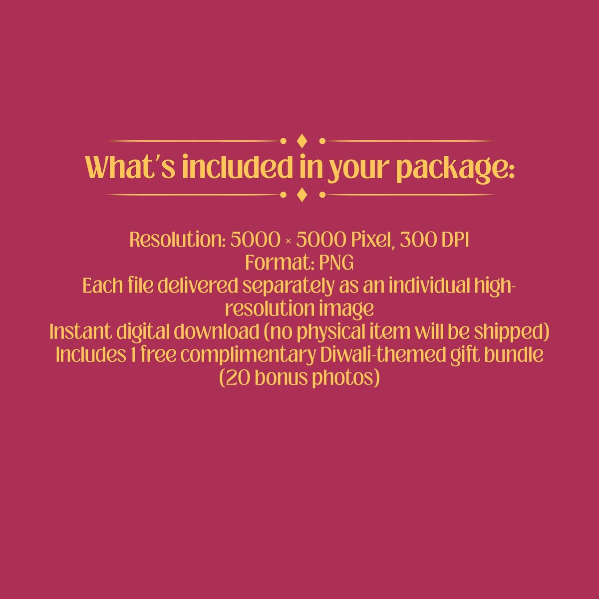 ? Bonus Gift: Includes a FREE complimentary Diwali-themed bundle with 20 bonus festive photos to inspire your next project.
