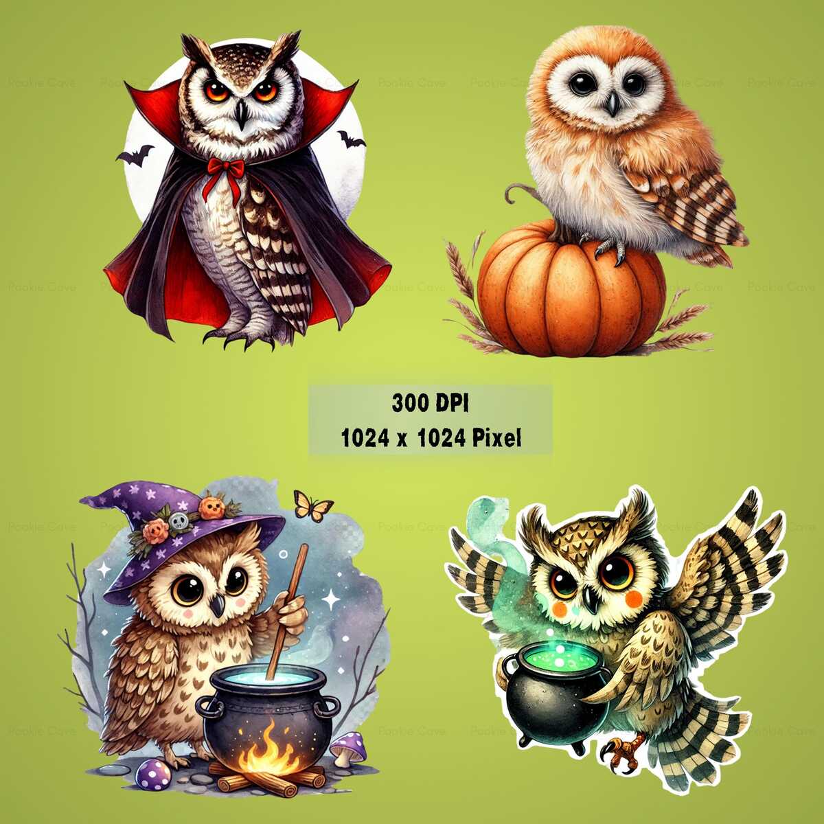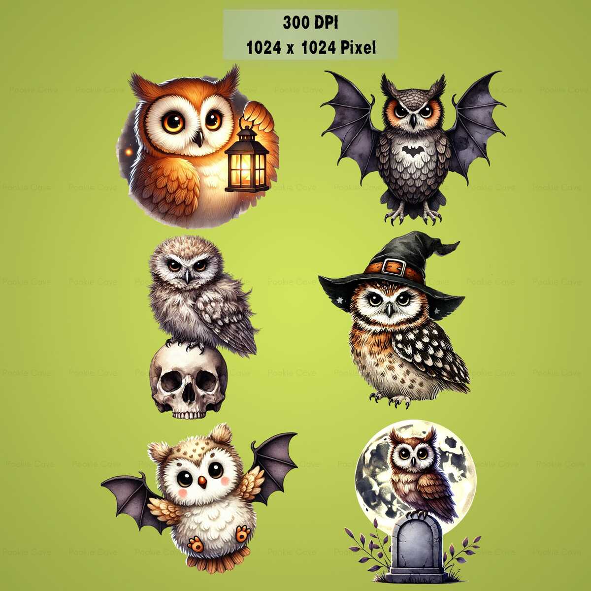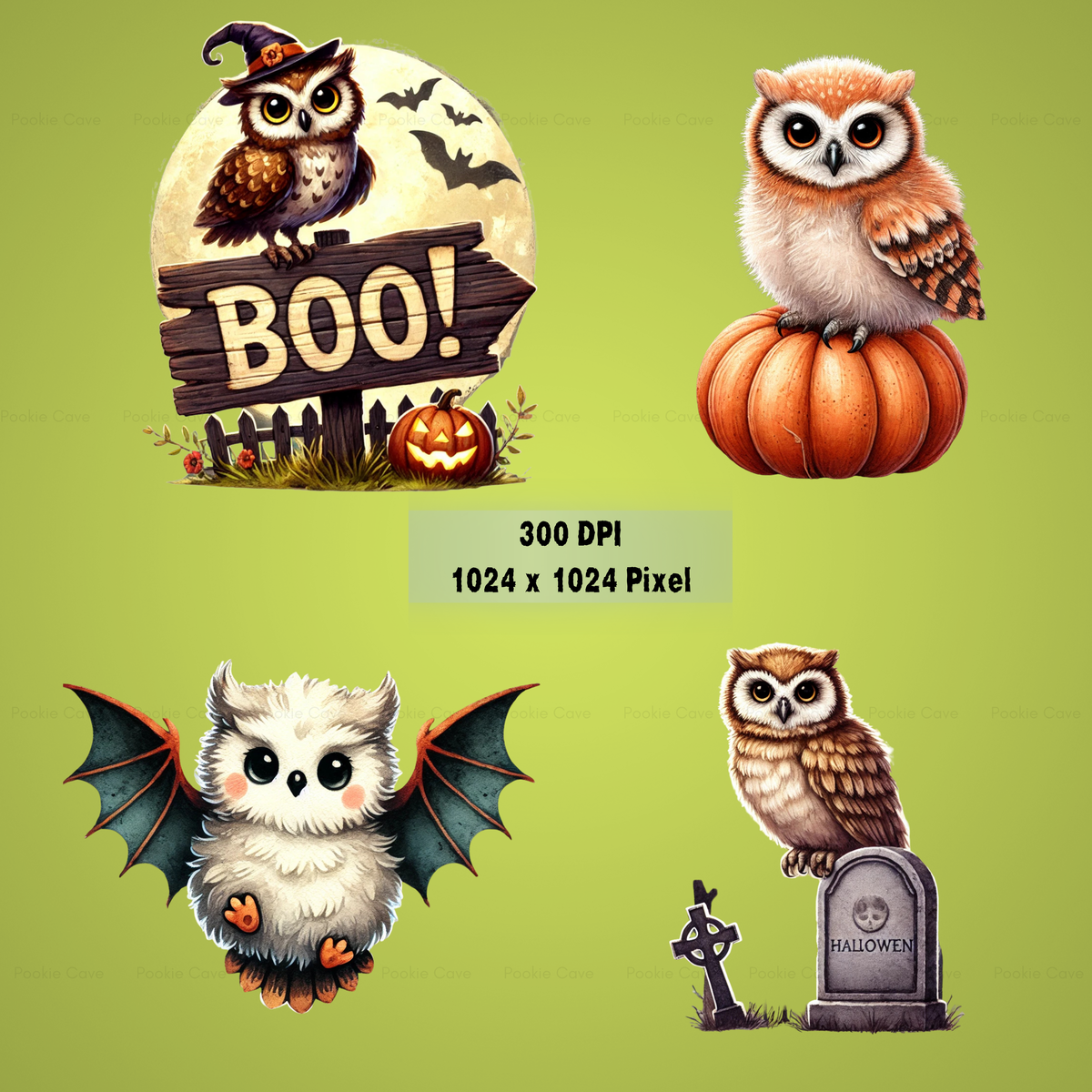 Watercolor Halloween Owl Clipart Bundle | Spooky PNG Images (Digital Download)