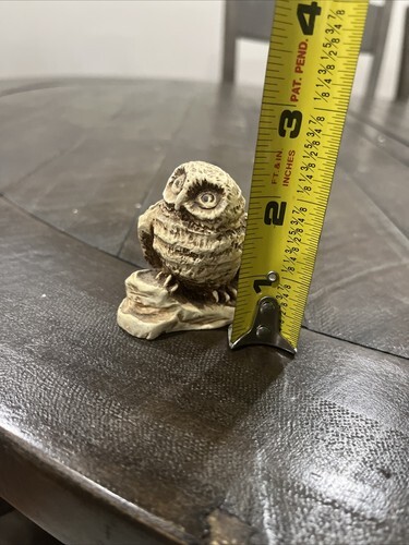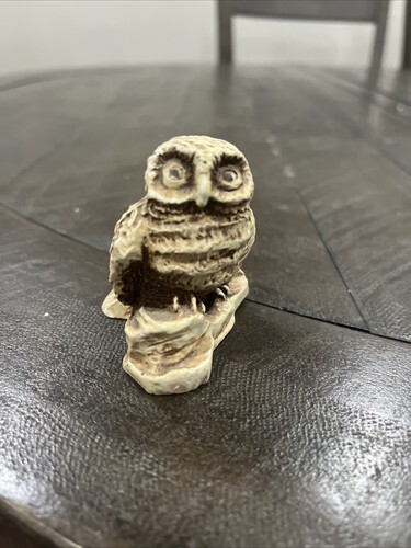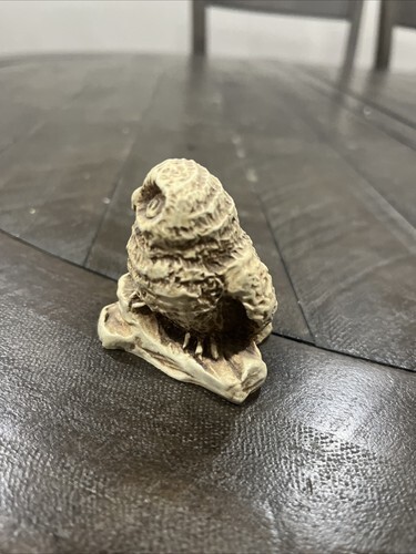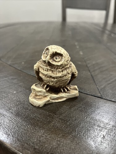 This vintage sculpture from Columbia Coast Artware features a beautiful owl design, hand cast in 1981 from high-quality resin using bronze casting production techniques. Measuring at 2 inches in height, this small figurine is a perfect addition to any art collection. The intricate details of the owl's feathers and eyes are impressive, making it a true masterpiece.