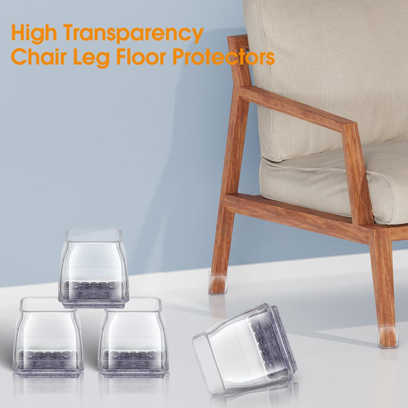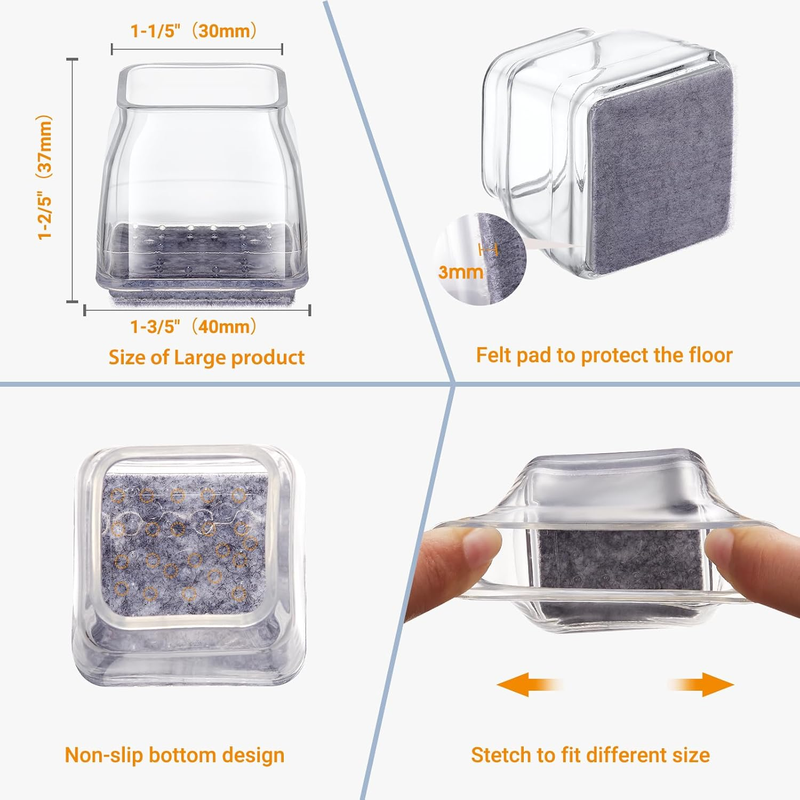 36Pcs Square Chair Leg Floor Protectors, High Elastic Felt Furniture Pads for Hardwood Floors, Silicone Floor Protectors for Chairs, Chair Leg Caps Covers Socks (Transparent, Large)