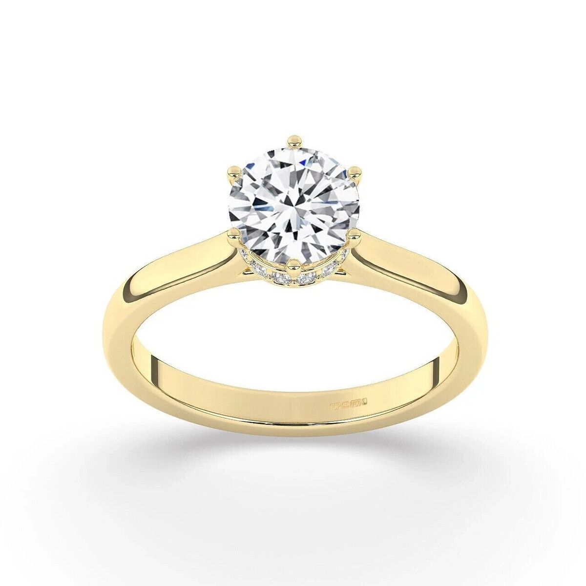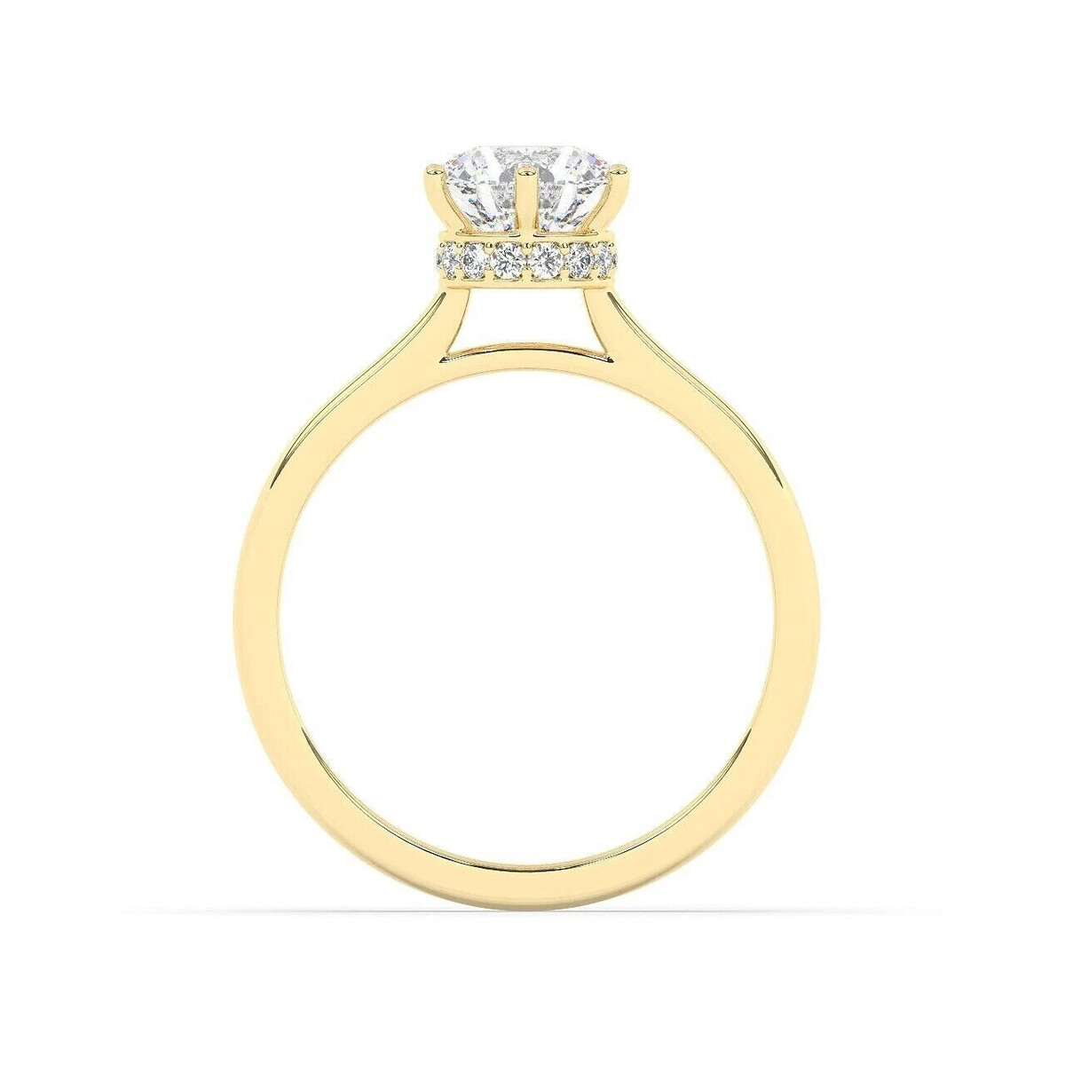 1.00 Cts Round Cut F VS1 Lab Grown CVD Diamond Hidden Halo Ring 14k Yellow Gold