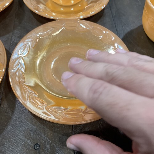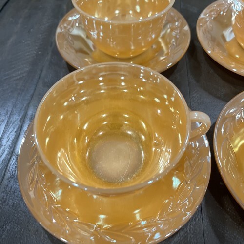 Fire King Peach Lustre Luster Ware Leaves Tea Cup Saucer Set Of 4