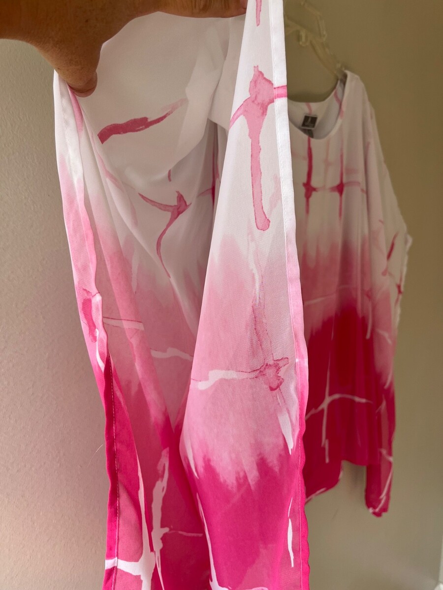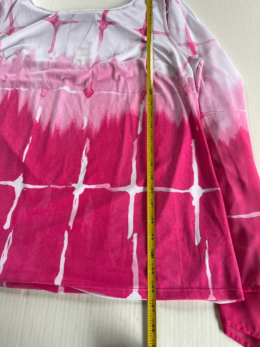 JM Collection Sz 2X Fuchsia White V Neck Pullover Blouse Top Kimono Sleeve