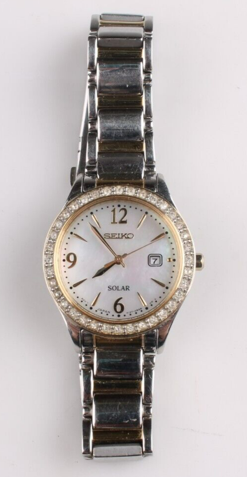 Esto es para un SEIKO SOKO SOL126 SOLAR SOLAR SOLAR DE BIBEL DE CRISTAL Solar Madre de Pearl Dial Women's Watch