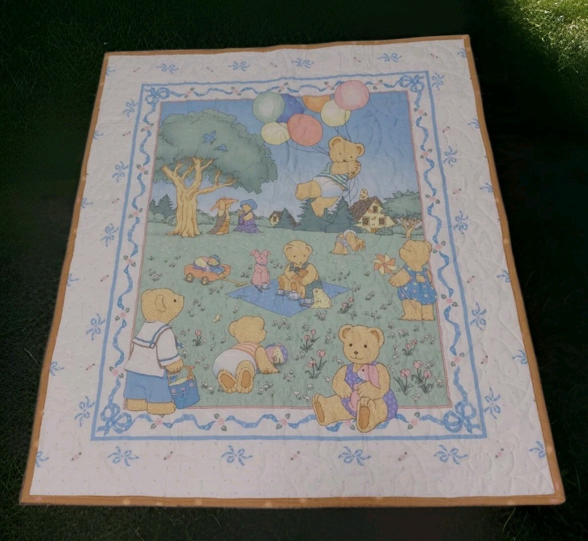 Quilts For Kids Teddy Bear Crib Baby Comforter Quilt Picnic Balloons