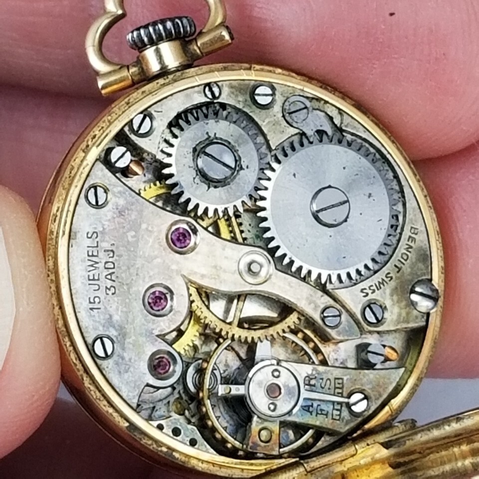 antique 14k Gold pocket pendant watch Bencit Swiss SOLID GOLD 15j womens