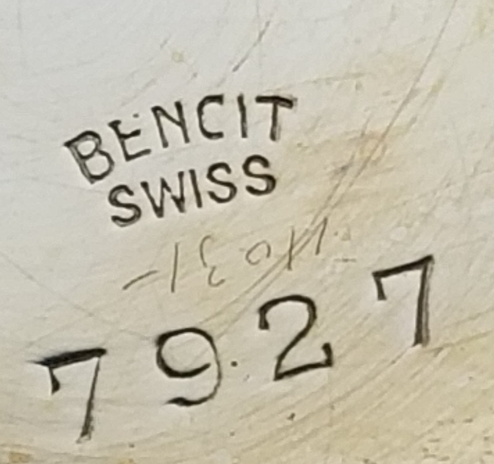MOVEMENT SIGNED: Bencit Swiss, 15 Jewels, etc. See pictures for additional movement markings.