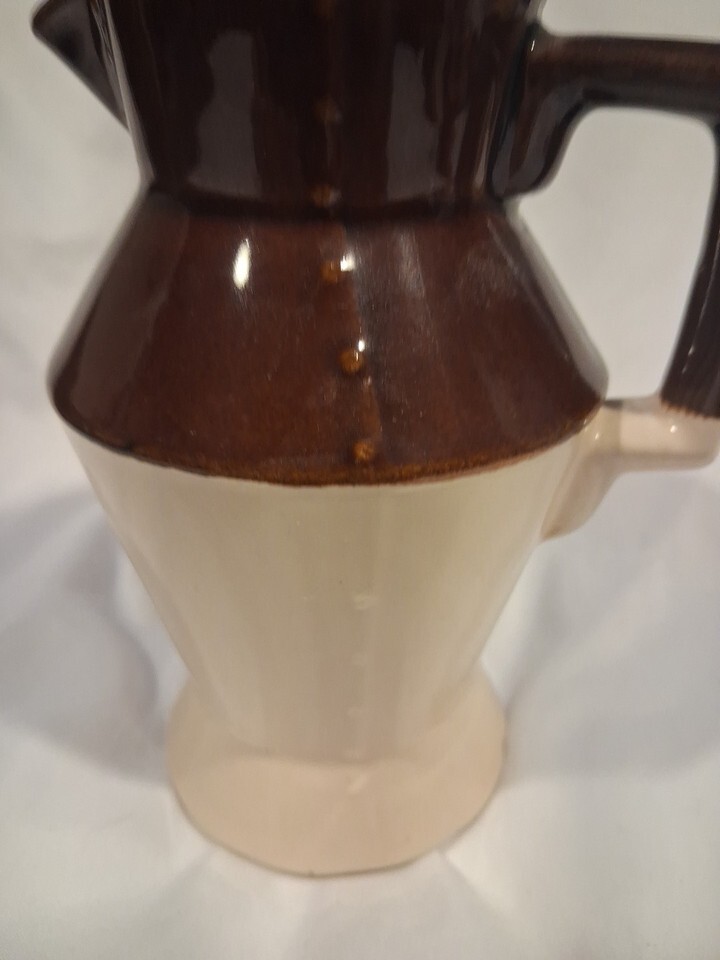 This vintage McCoy small pitcher is a must-have for collectors of Colonial-style kitchenware. The pitcher features a beautifully carved wooden eagle with the words "Spirit of 76" and is a perfect addition to any collection. It was made in the United States and is in excellent condition. The item is 6 inches tall, with a length and width of ... inches. It is an ideal piece for display or use in the kitchen.