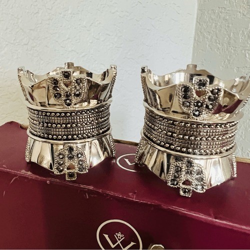 Wallace Silversmiths Nickel Black Diamonds Crystal Napkin Rings