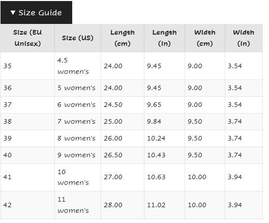 | Taglia scarpa EUR (donna)s: |