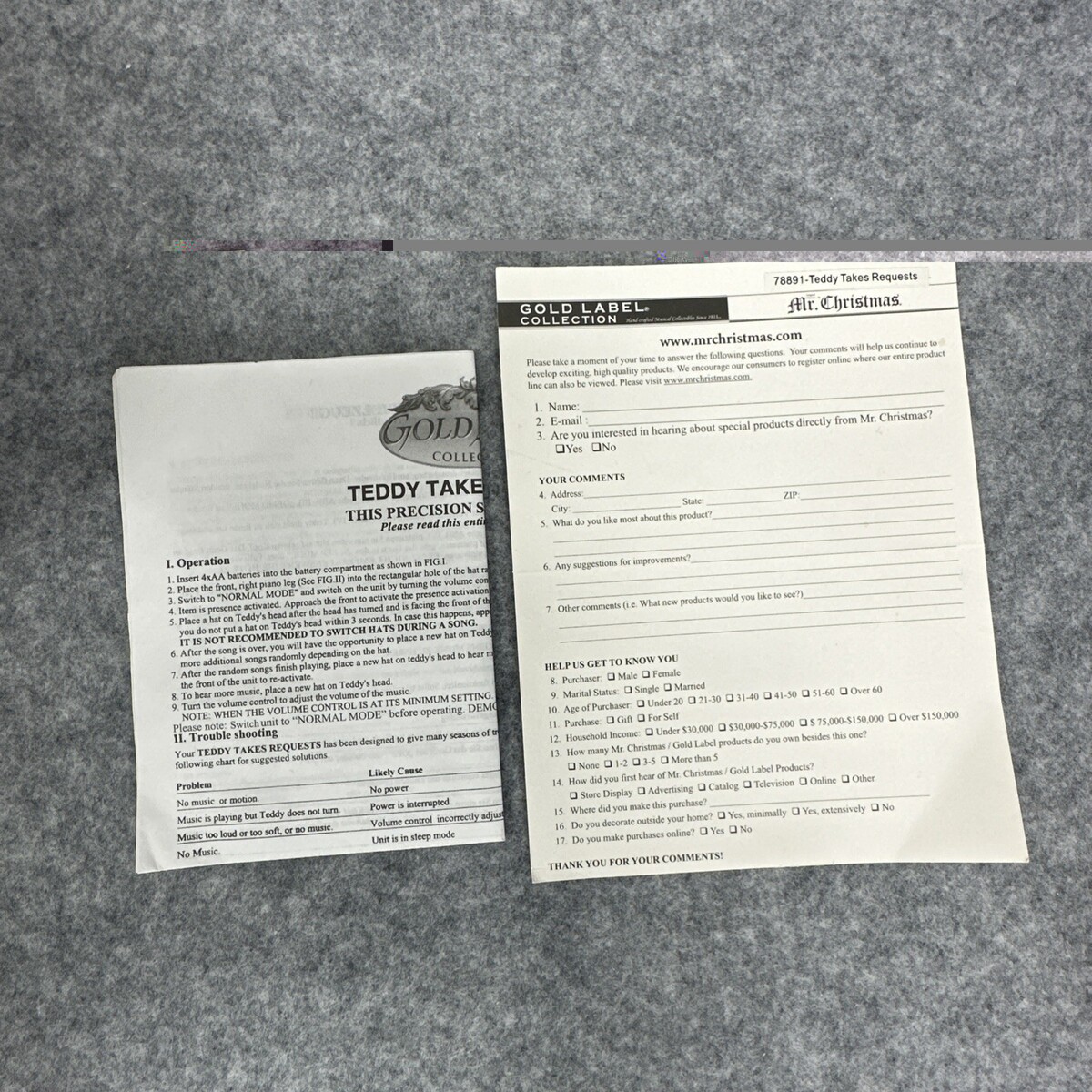 Mr Christmas TEDDY TAKES REQUESTS Piano Playing Teddy 7 Hats 60 Songs - Works