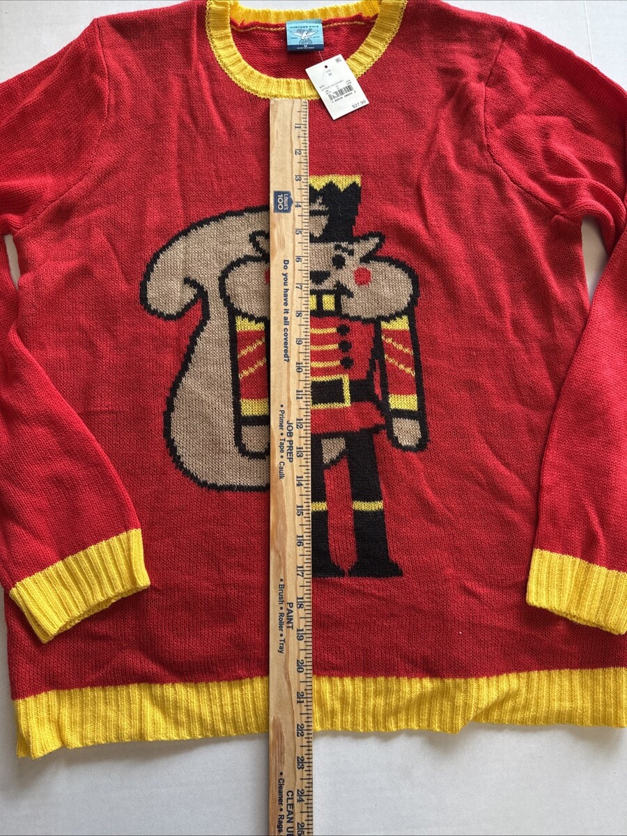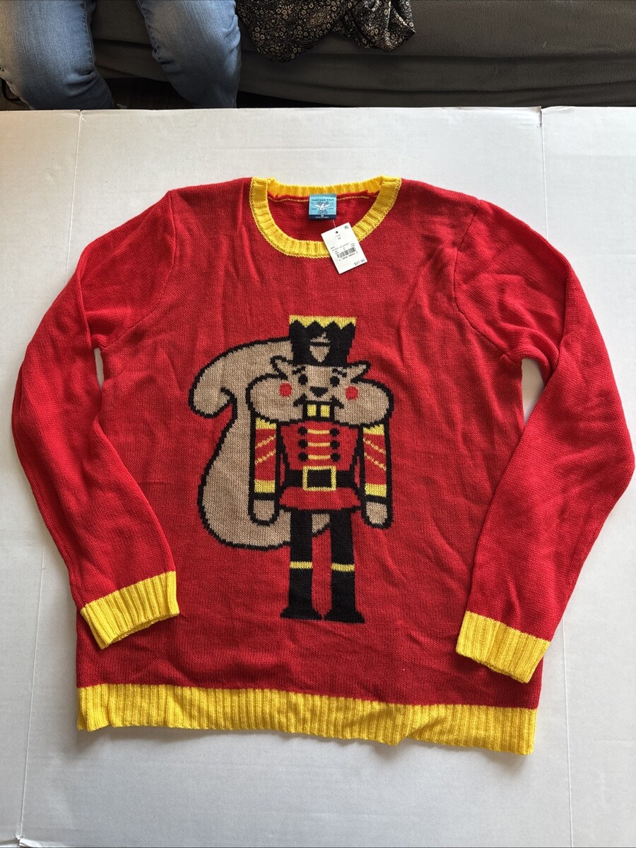 The Nutcracker Women's Size Medium Ugly Christmas Sweater is a festive and cozy garment perfect for the winter season. Made from acrylic material with a tight-knit design, this sweater features a round neck, long sleeves, and a metallic/shimmer look for added sparkle. With a vintage Nutcracker theme and a red color, this sweater is ideal for Christmas, parties, or casual wear. Machine washable for easy care, this pullover sweater in a regular fit offers a comfortable and stylish option for the holiday season.
