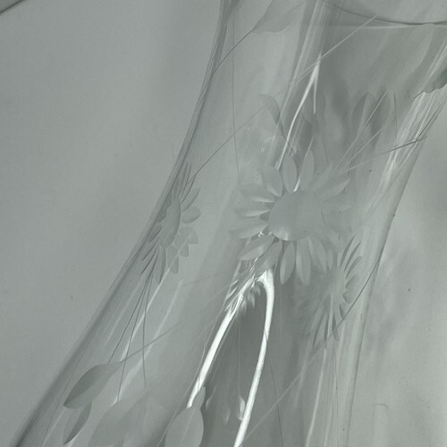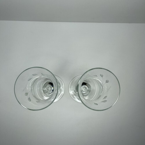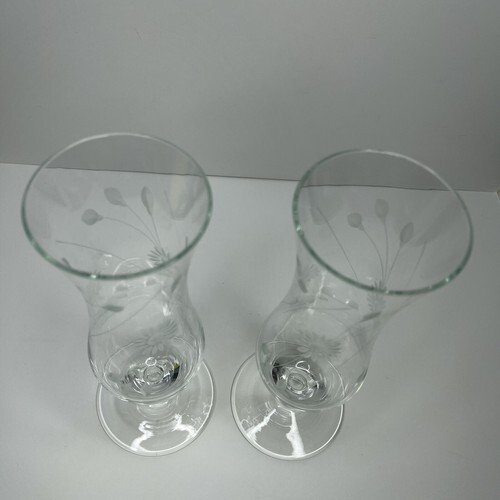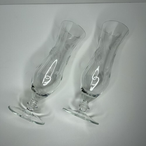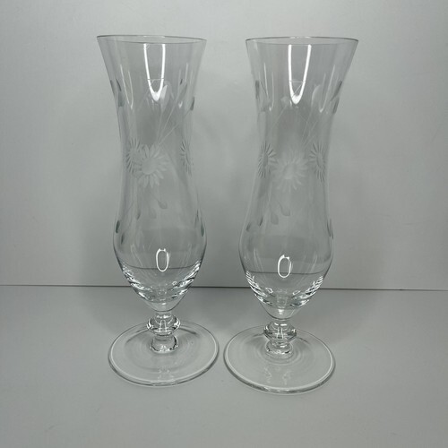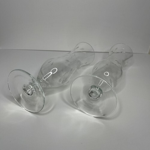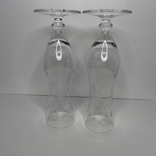 Large 16oz Wine Champagne Flute Clear Etched Glass Floral Glasses Footed Long