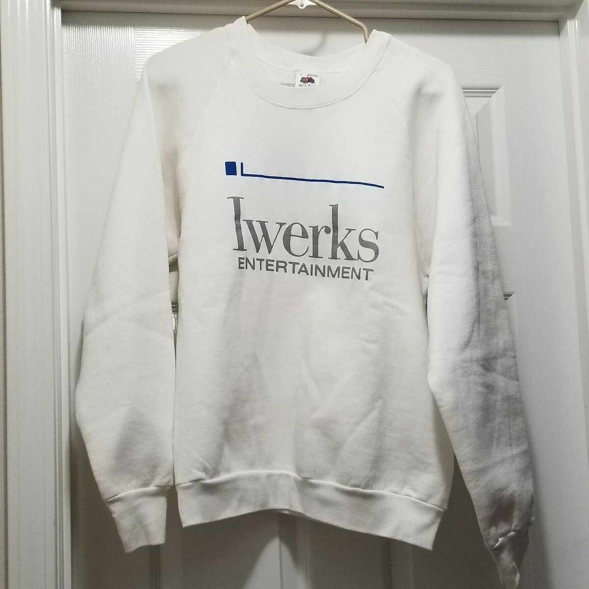 Amazing Condition Rare Vintage Fruit of the Loom Iwerks Entertainment Movie Theater / Disney White Sweatshirt Men's Size Large. Actual measurements: 43" chest, 24.5" length. 50% cotton / 50% polyester. Made in USA