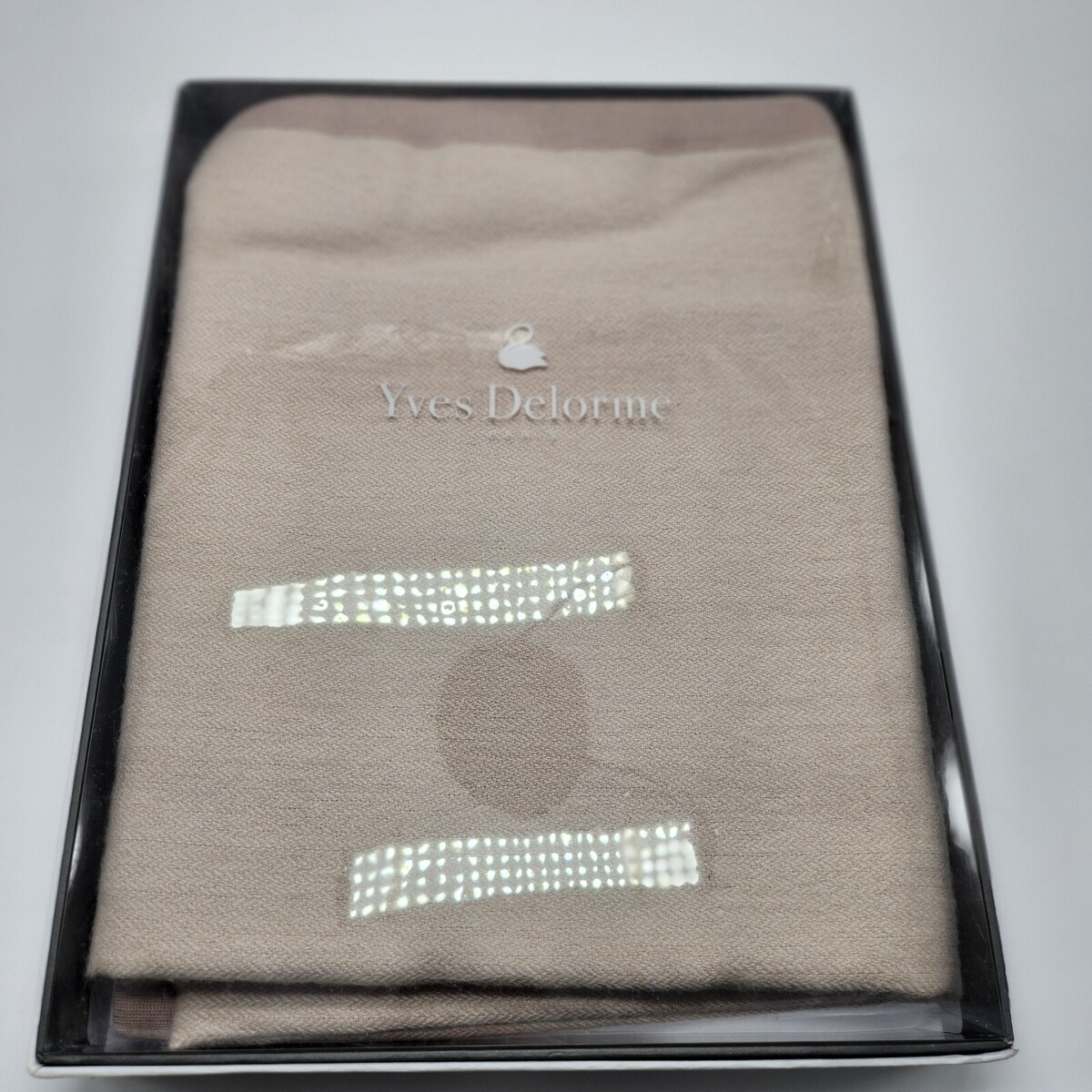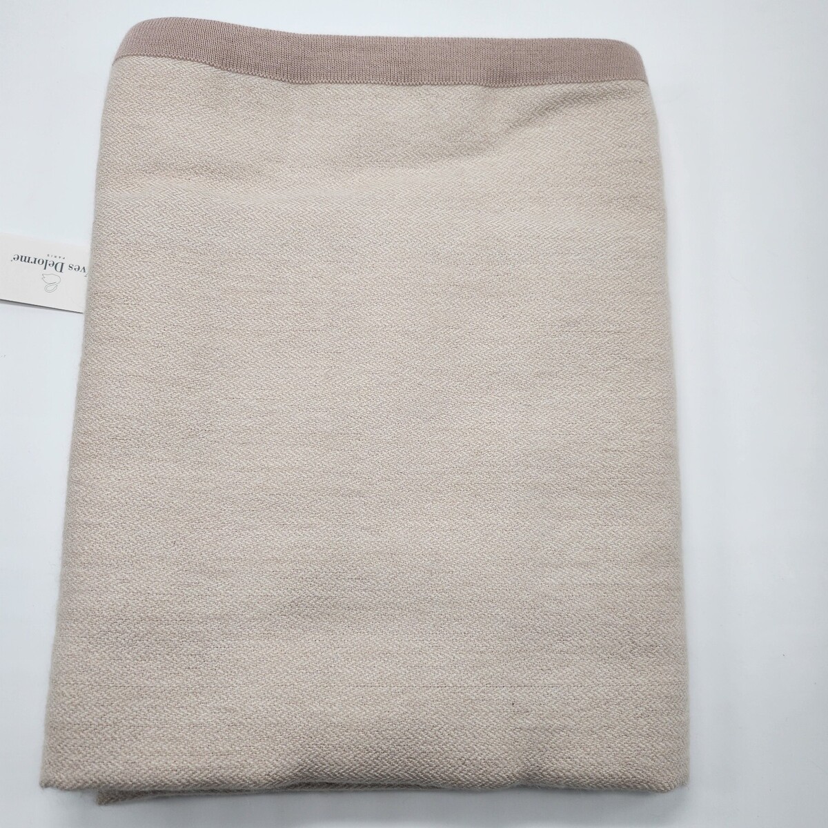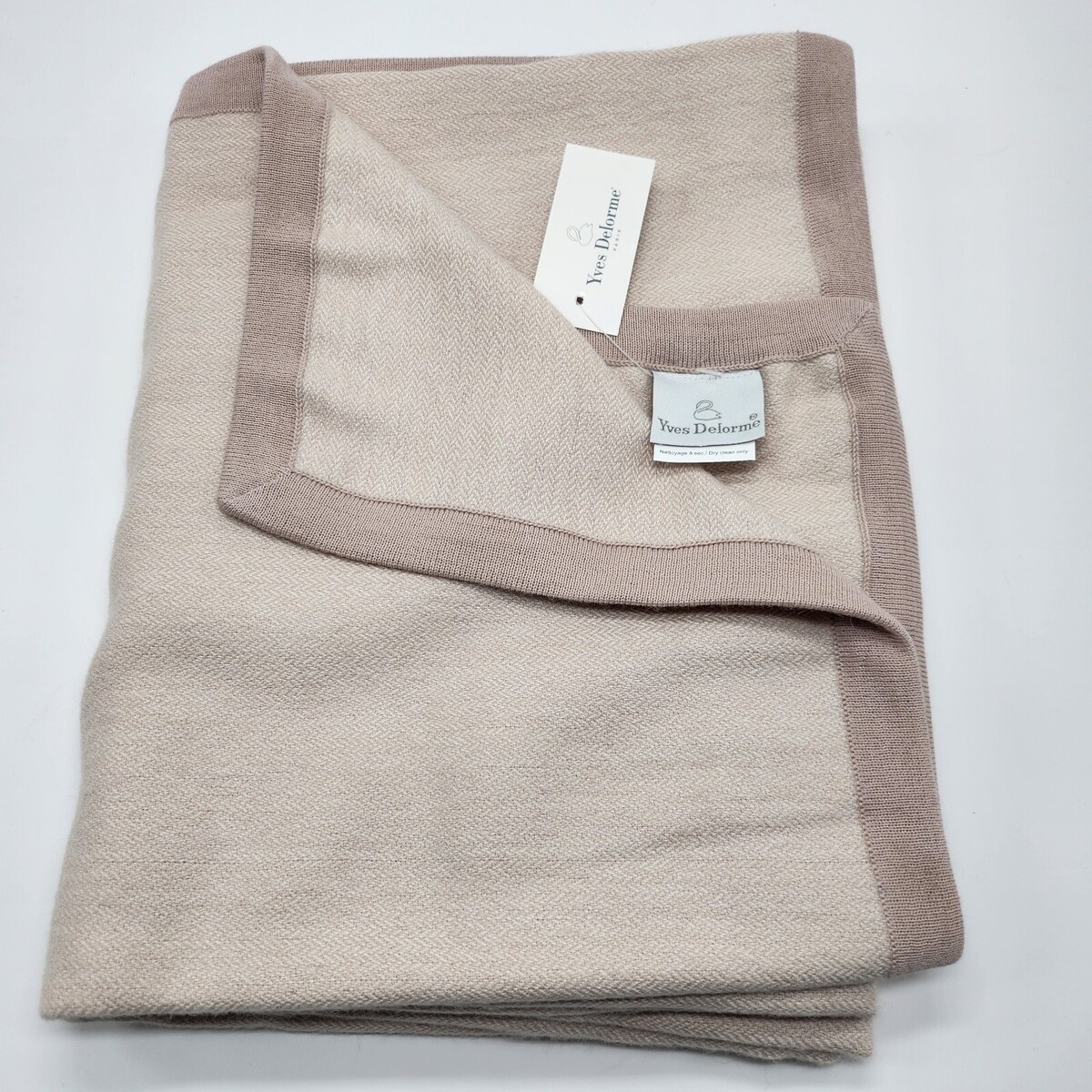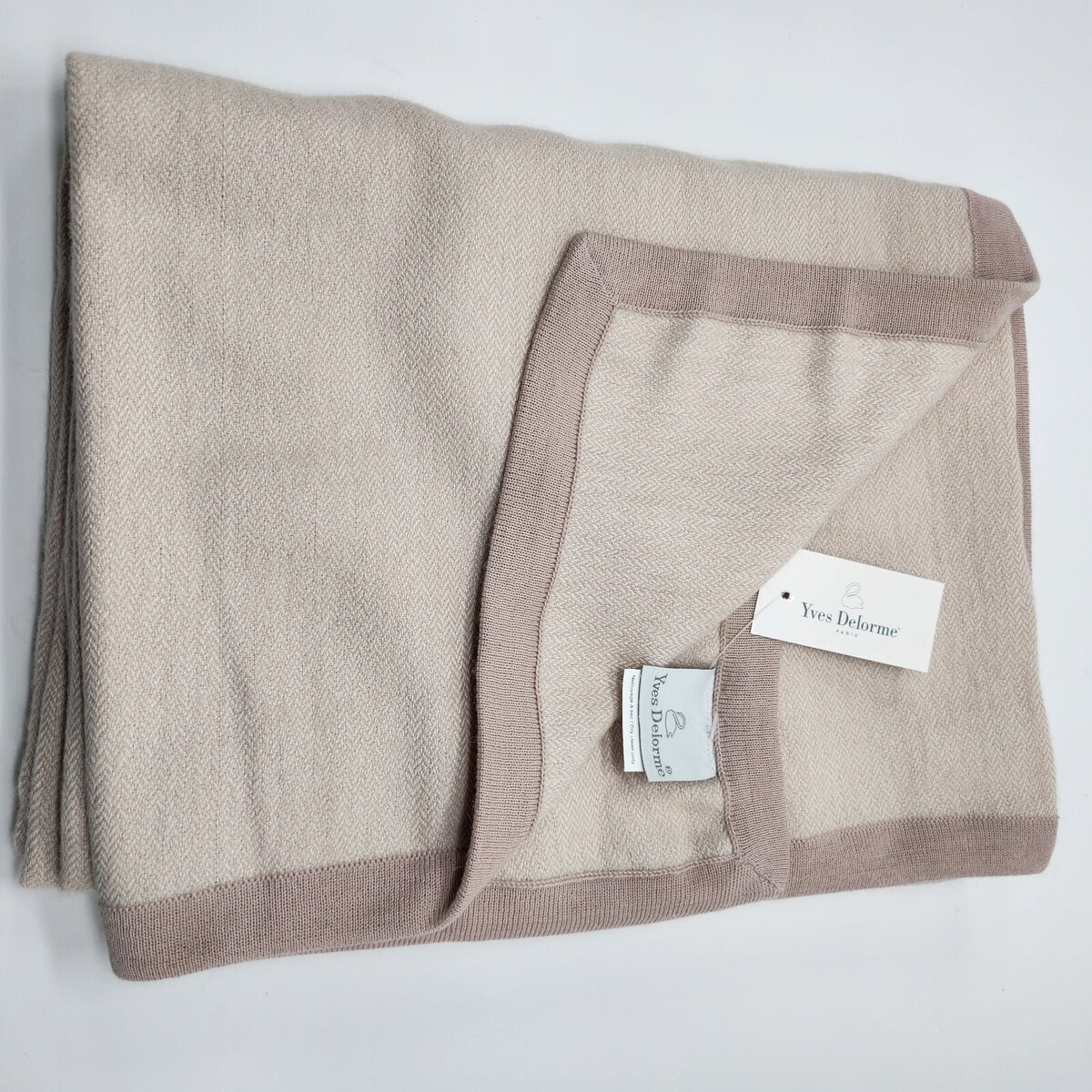 Yves Delorme Visible Beige Throw Blanket Baby Alpaca Border 51"x67" Gift BOX NEW