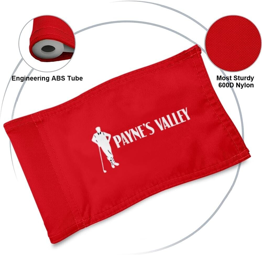 Imported,600-denier nylon material.Payne's Valley Golf Club Golf Pin Flag with study tube inserted 20X13Inch. It can be folded or rolled up for storage, easy to carry anywhere.