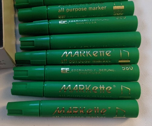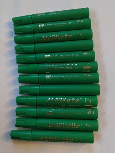 Up for sale is a Box of 12 NEW Vtg Lot Eberhard Faber MARKette 680 Green Permanent MARKERS USA.