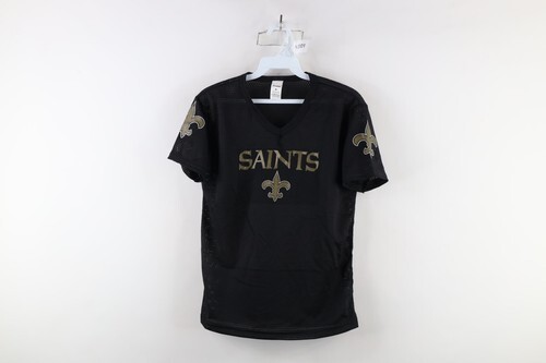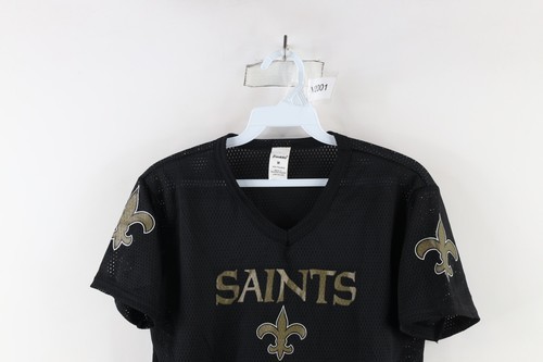 Vintage 90s Boys Medium Spell Out Mesh New Orleans Saints Football Jersey Black