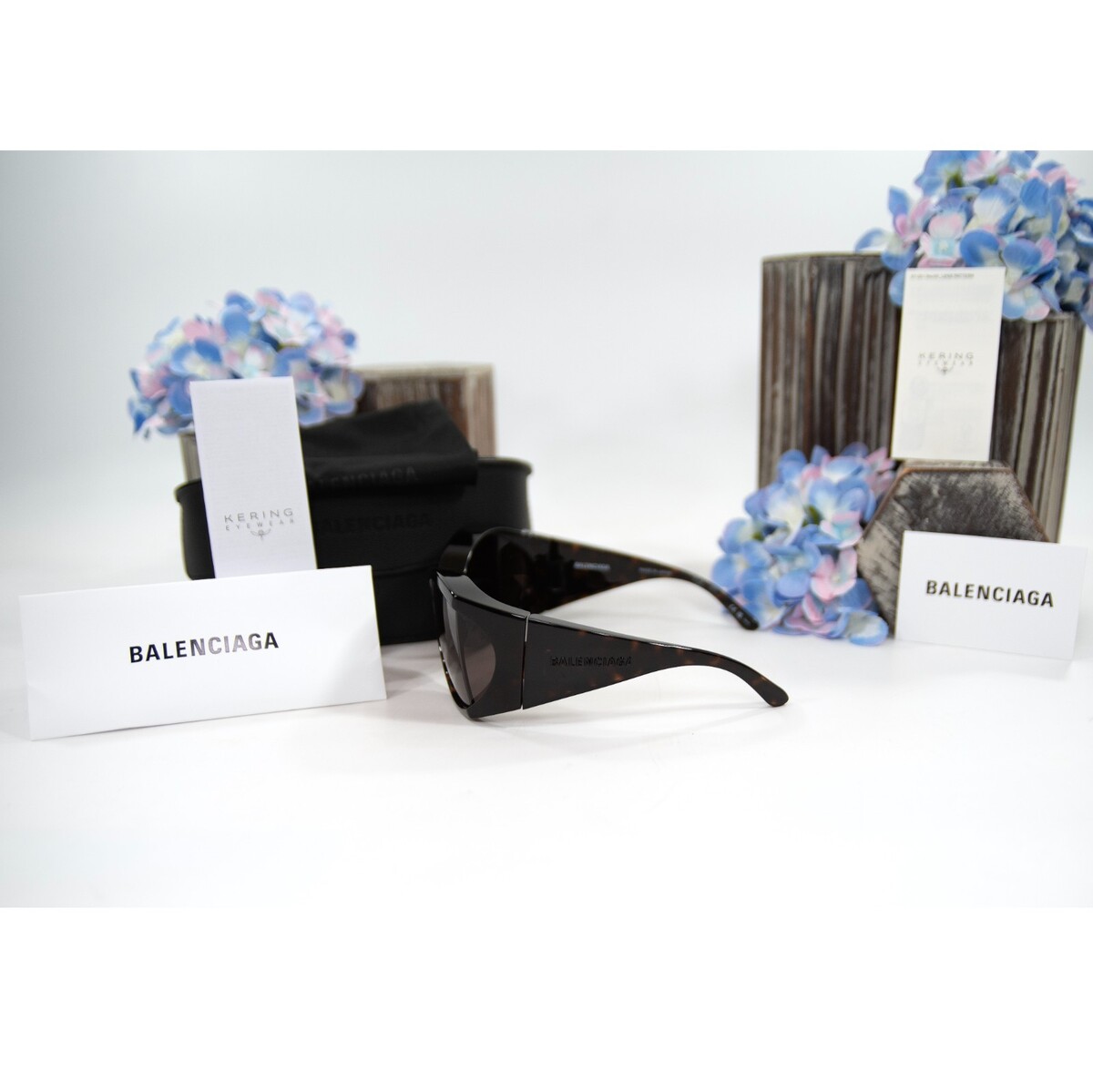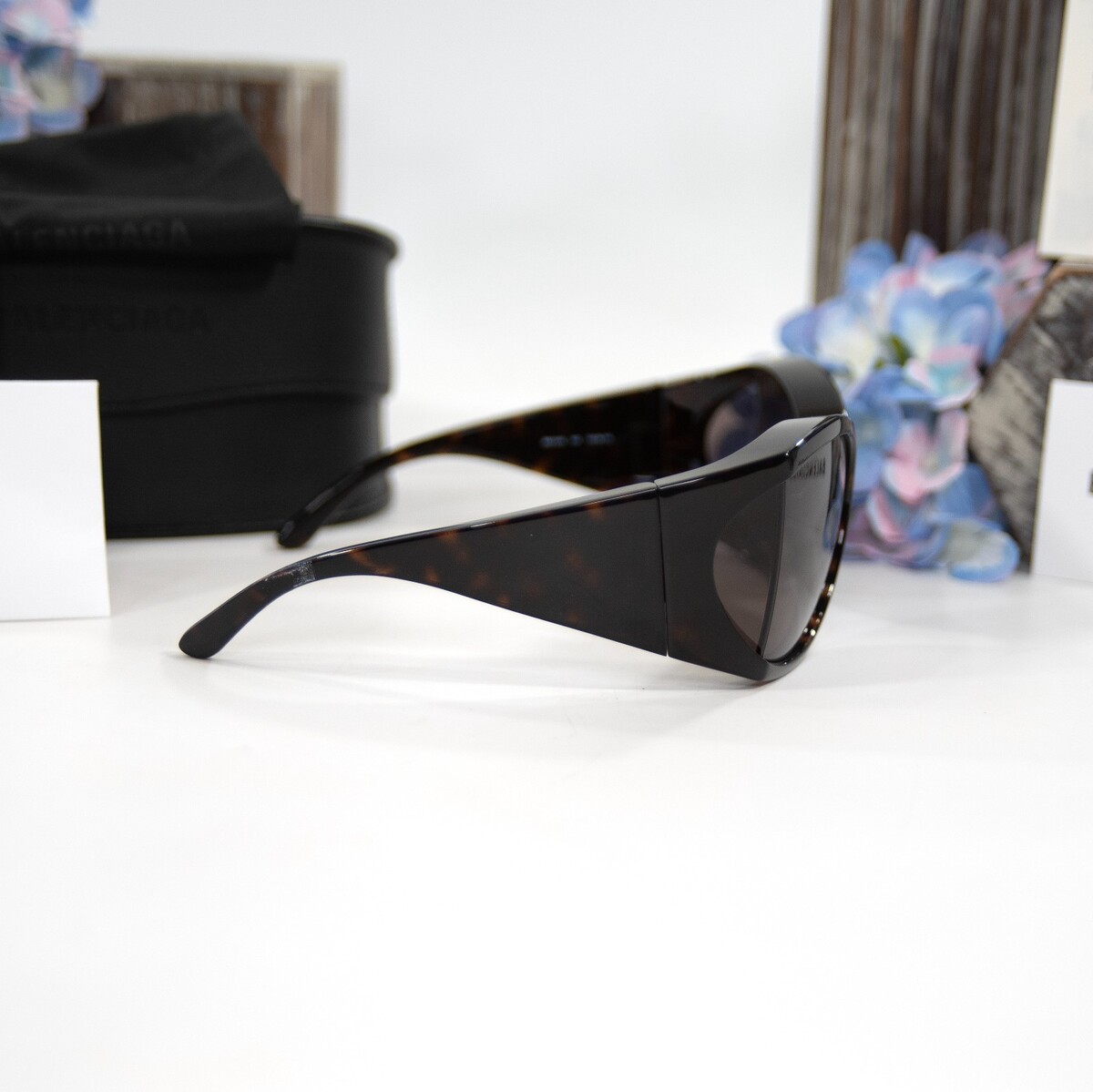 Balenciaga BB0154S Havana Brown Tortoise Logo Acrylic Wrap Sunglasses NWT Case
