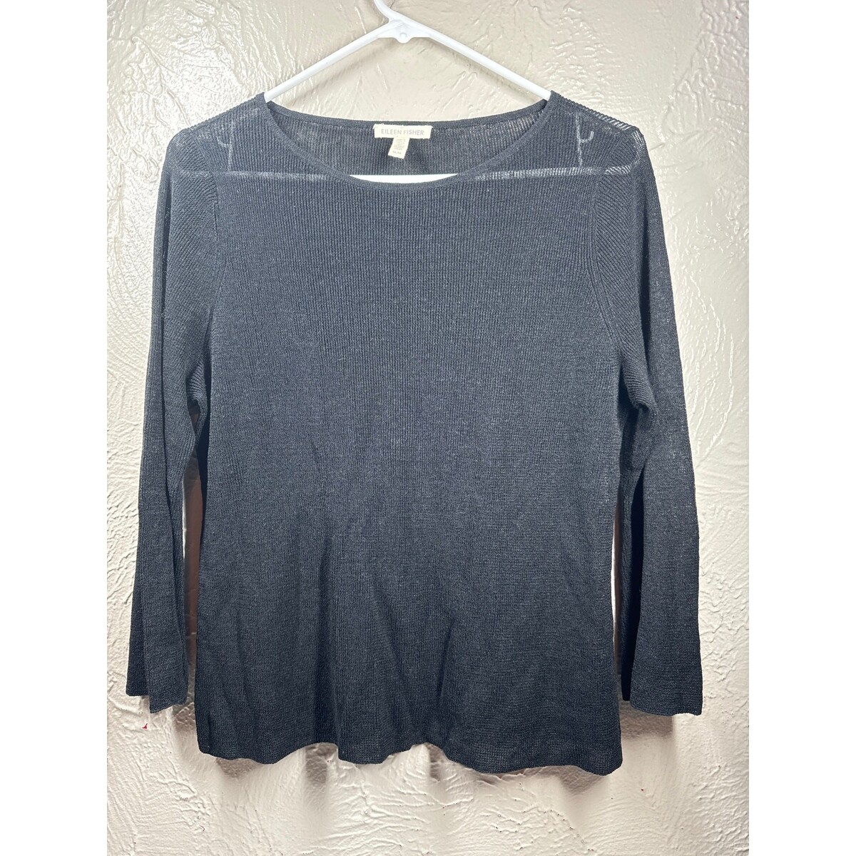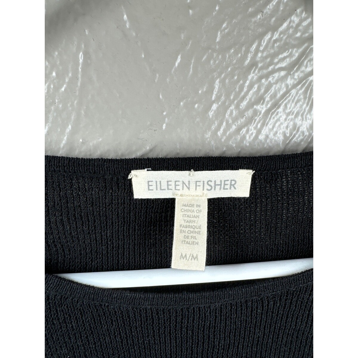 Eileen Fisher Linen Nylon Blend Black Knit Top Shirt Organic Cotton Womens Sz M