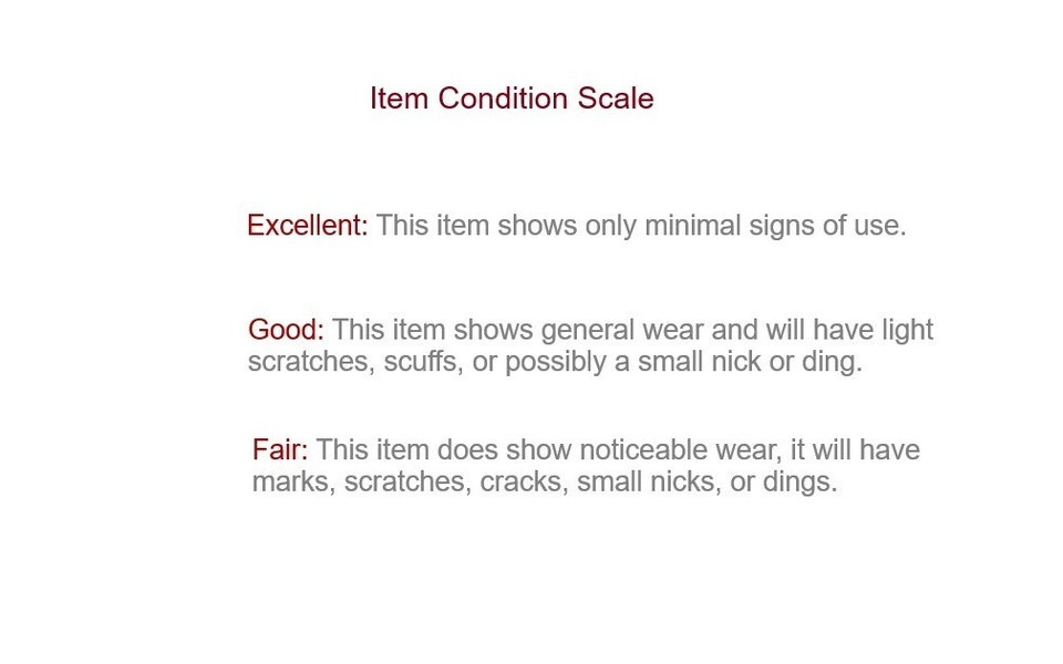 Fair: This Item does show noticeable wear, it will have marks, scratches, cracks, small nicks or dings.???????