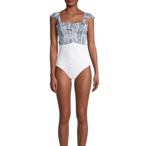 This shirred swim top with a tie-dye print and fluttery shoulder straps perfectly encapsulate the breezy beach vibes.