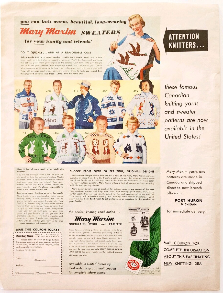 1957 Mary Maxin Sweater Patterns Advertisement Crafts McCall's Needlework DWJJ6