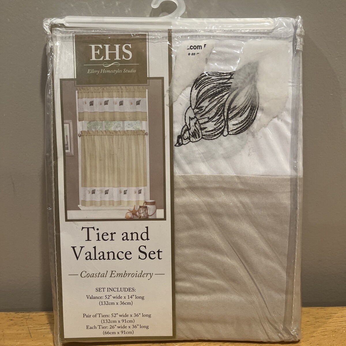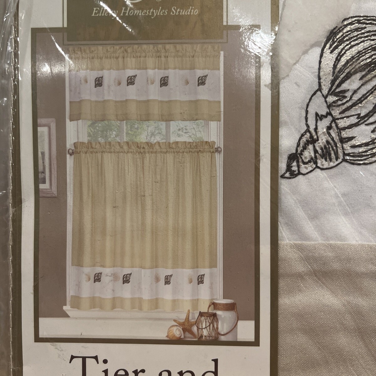 Ellery Homestyles 36 inch Tiers Valance Curtain Set Embroidered Seashells Beach