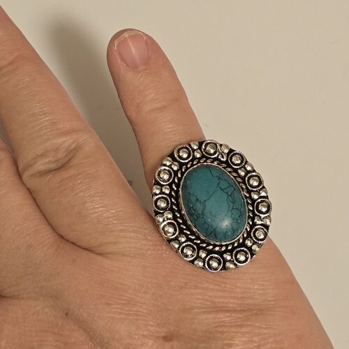 Stunning Vintage Mexico Sterling Silver Handmade Turquoise Ring - Unmarked. Size 6. Comes in a little purple bag! Please See all Photos.