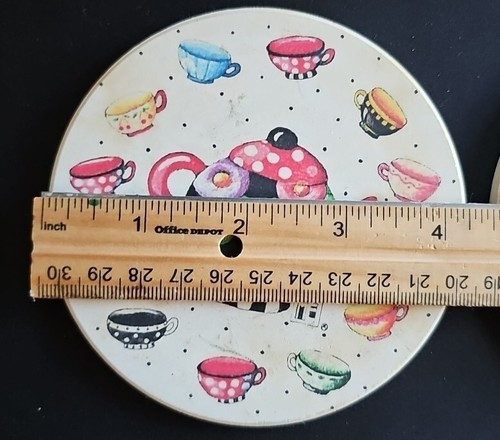 Mary Engelbreit Teapot Design Set of 4 Round Cork Backed Stone Coasters Vintage