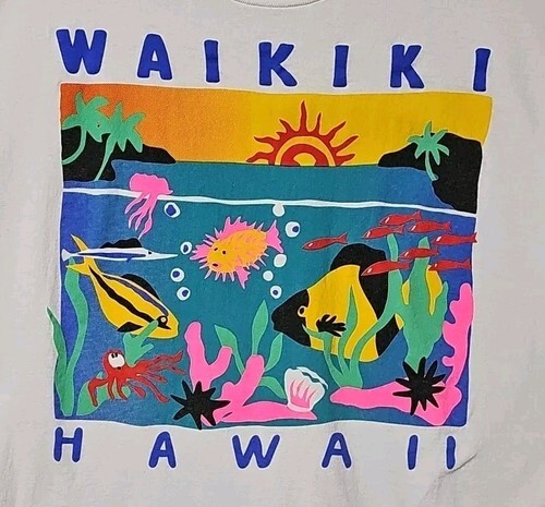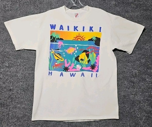 UP FOR SALE: Vintage JERZEES Mens Waikiki Hawaii T Shirt Single Stitch USA Large 44/46