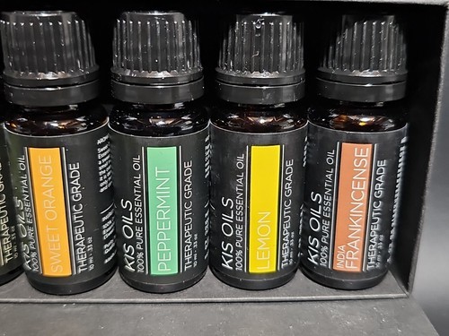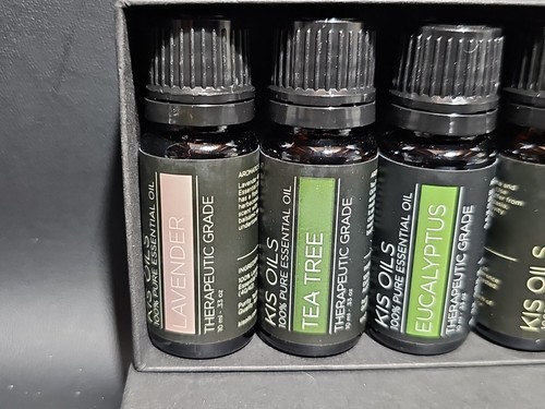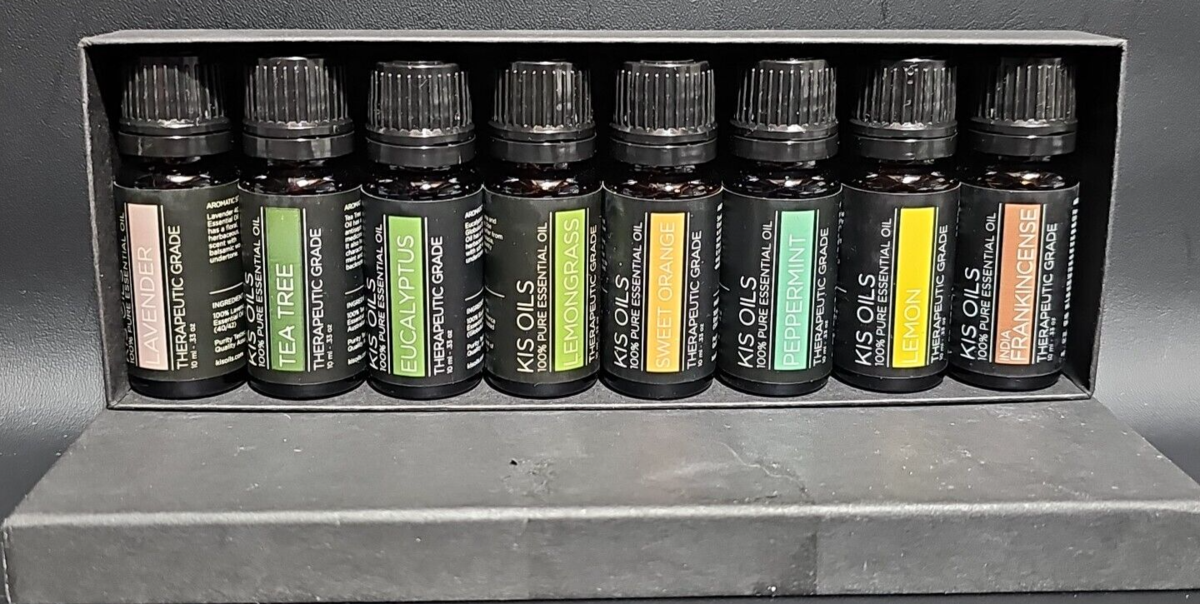 UP FOR SALE: Kis Oil'S Aromatherapy Top 8 Therapeutic Grade Basic Sampler Essential Oil Gift Set, 10ml, Set of 6 (Lavender, Tea Tree, Eucalyptus, Lemongrass, Sweet Orange, Peppermint, Lemon, and Frankincense)