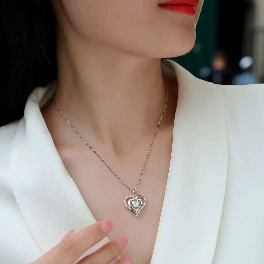 925 Sterling Silver Moissanite Inlay Heart Shape Pendant Necklace