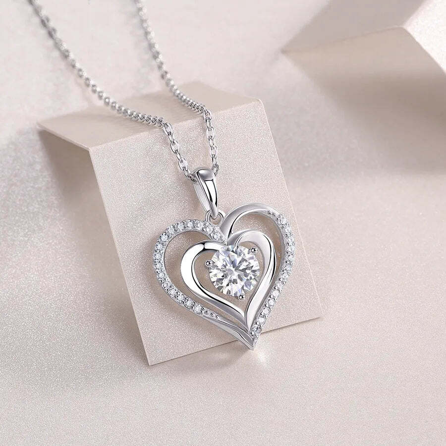 925 Sterling Silver Moissanite Inlay Heart Shape Pendant Necklace