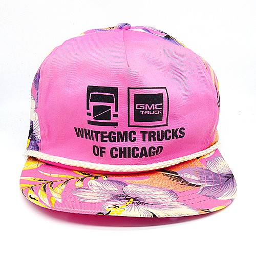RARE Vintage WHITEGMC Floral Snapback Trucker Hat Cap Pink Purple Yellow NEW