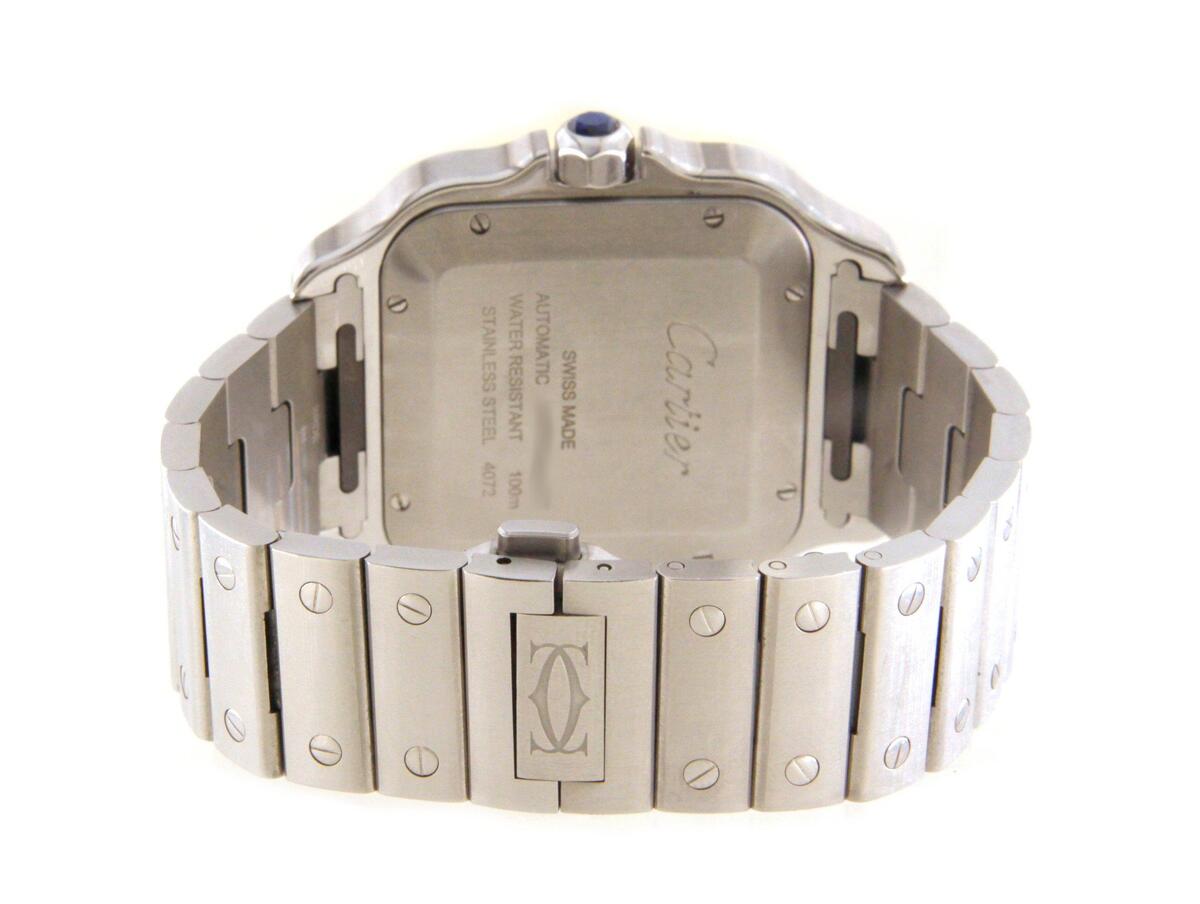 Type: Wrist watchBrand: CartierModel number: 4072Model name: SantosCase width: 38mmWeight: 83.0Bracelet length: 6"Movement type: AutomaticCase Material: Stainless SteelBox included: noPaperwork included: noRunning: yesDial color: GoldBand material: Stainless SteelBezel Material: Stainless SteelCondition:Used