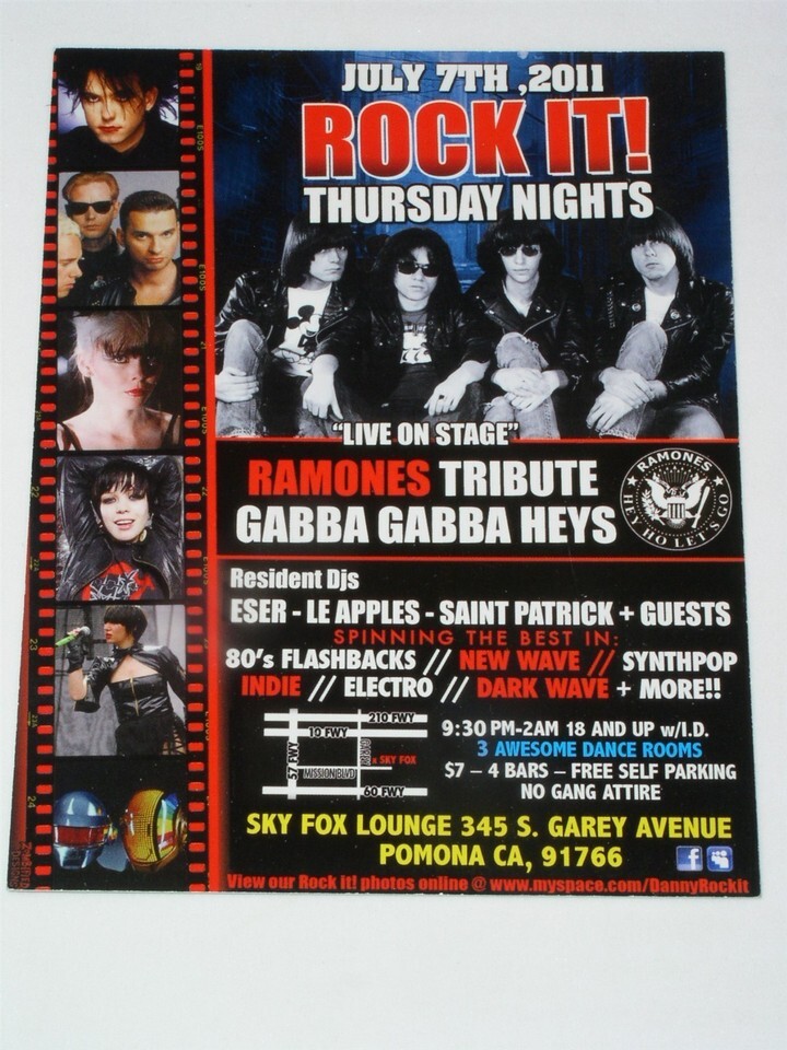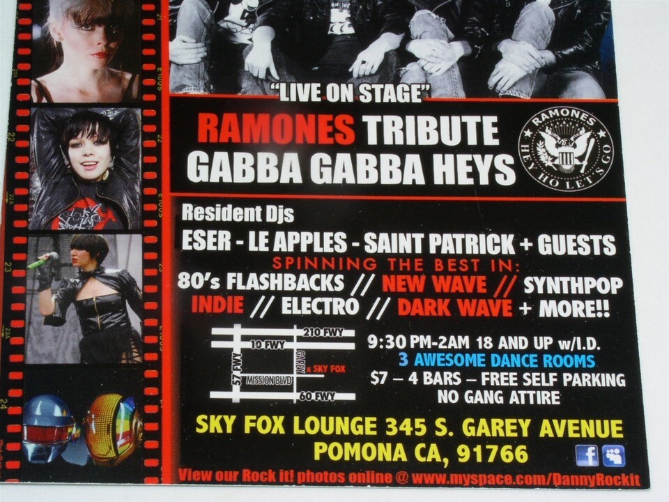 Ramones Tribute Concert Promo Card Gabba Gabba Heyes Pomona CA Vintage 2011*
