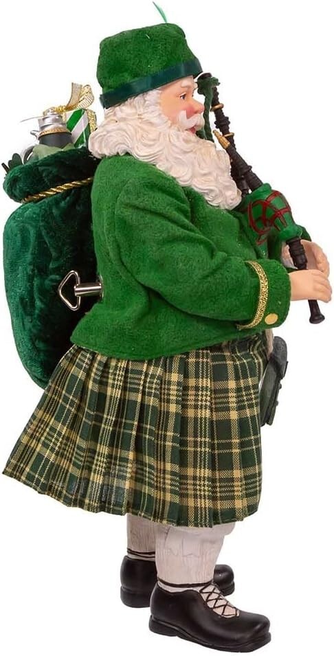 BRAND NEW with Tags Kurt Adler 10.5" Fabriche? Musical Irish Bagpiper Santa Tabletop Figurine FA0188
