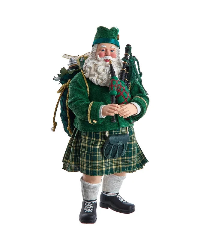 Irish Bagpiper Santa is a festive and unique holiday decoration
