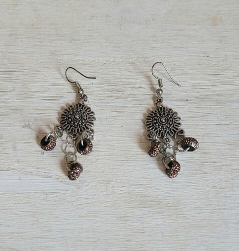 Vintage Earrings Costume Jewelry Handmade Sun Charm Art Deco B64