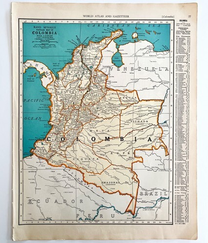 Colombia South America 1935 Map Atlas Venezuela Brazil Ecuador 14 x 11" LGAD99