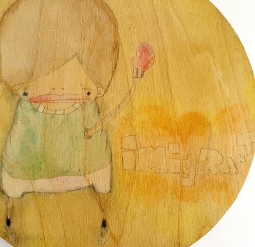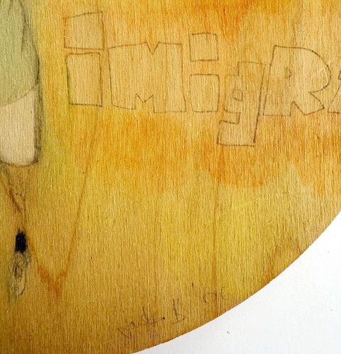 Immigrant Original Art Signed Jask B 2006 On Wood Round Watercolor SS