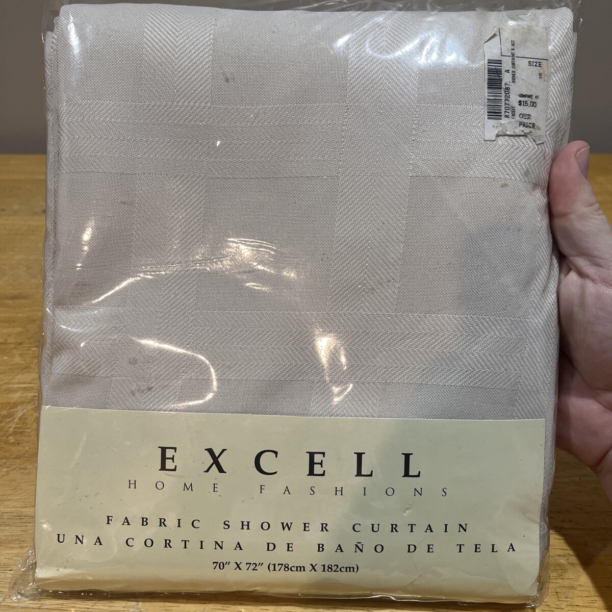 Excell Fabric Shower Curtain Light Brown Tan Embossed Check 70” X 72“ NOS