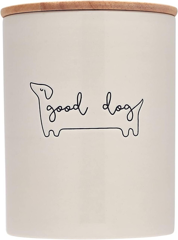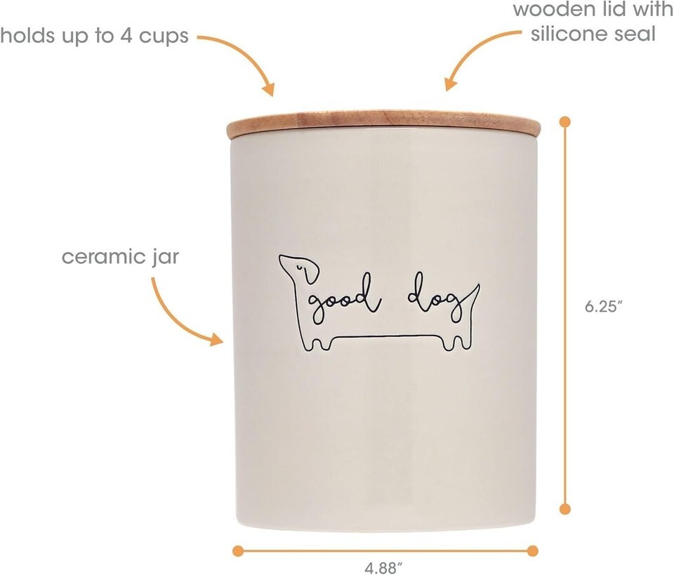 Good Dog Treat Jar, Ceramic and Wood Pet \Canister 4.7 Liters 4.88"L x 4.88"W
